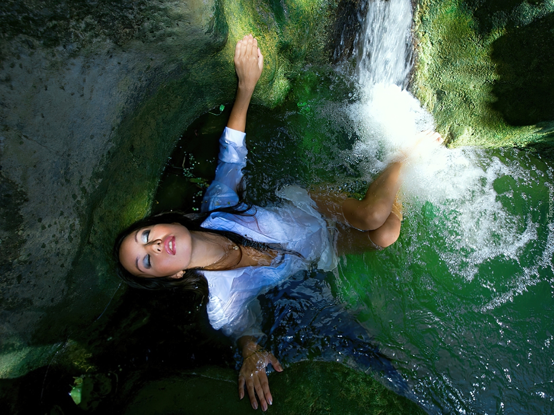 Edytor tapety: Kobieta, Woda, Mokra, Koszulka