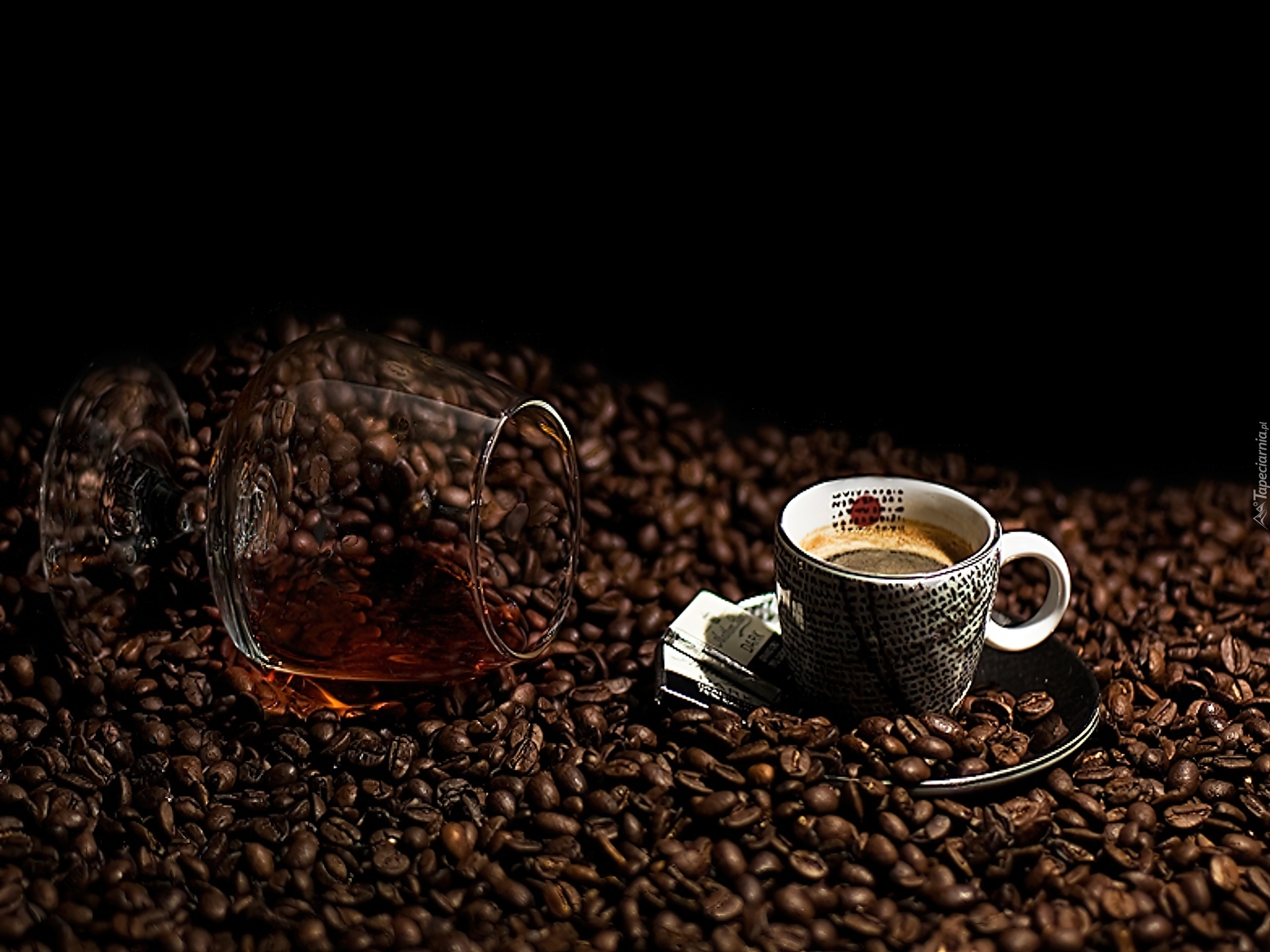 Edytor tapety: Ziarna, Kawy, Filiżanka, Kieliszek, Rozlany, Koniak