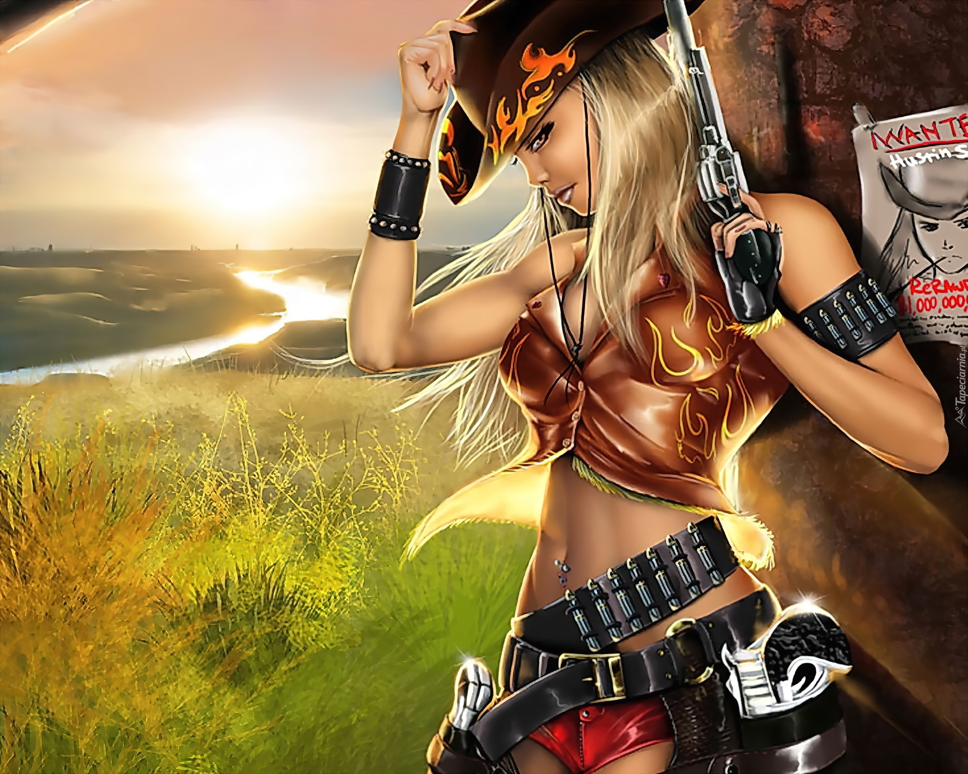 Edytor tapety: Kowbojka, Łąka, Drzewo