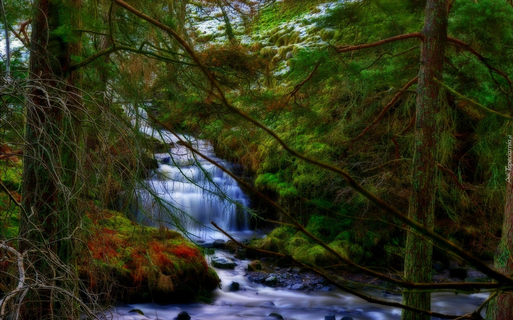 Edytor tapety: Wodospad, Drzewa, Gałęzie, Rzeka
