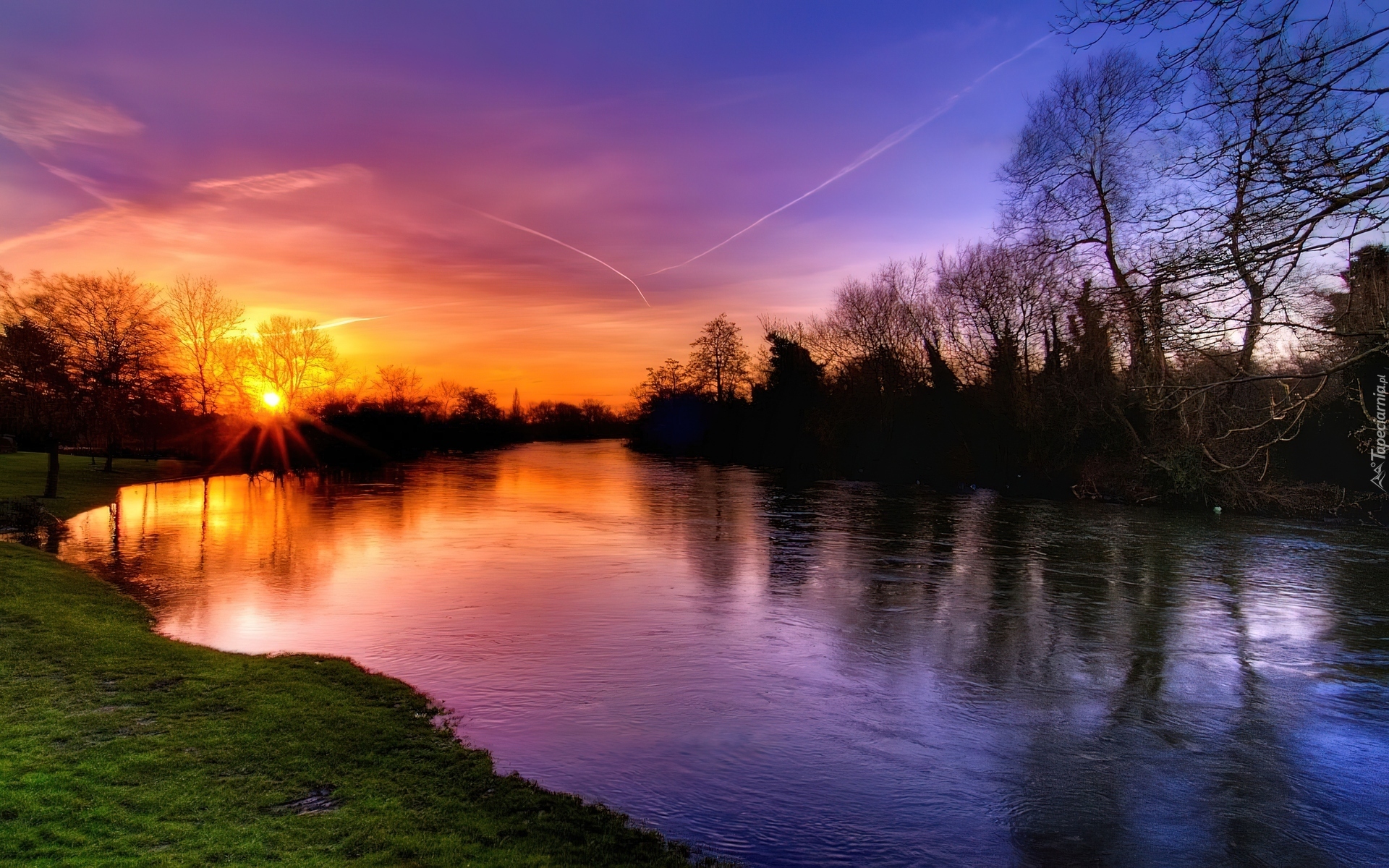 Edytor tapety: Piękny, Zachód, Słońca, Rzeka, Drzewa