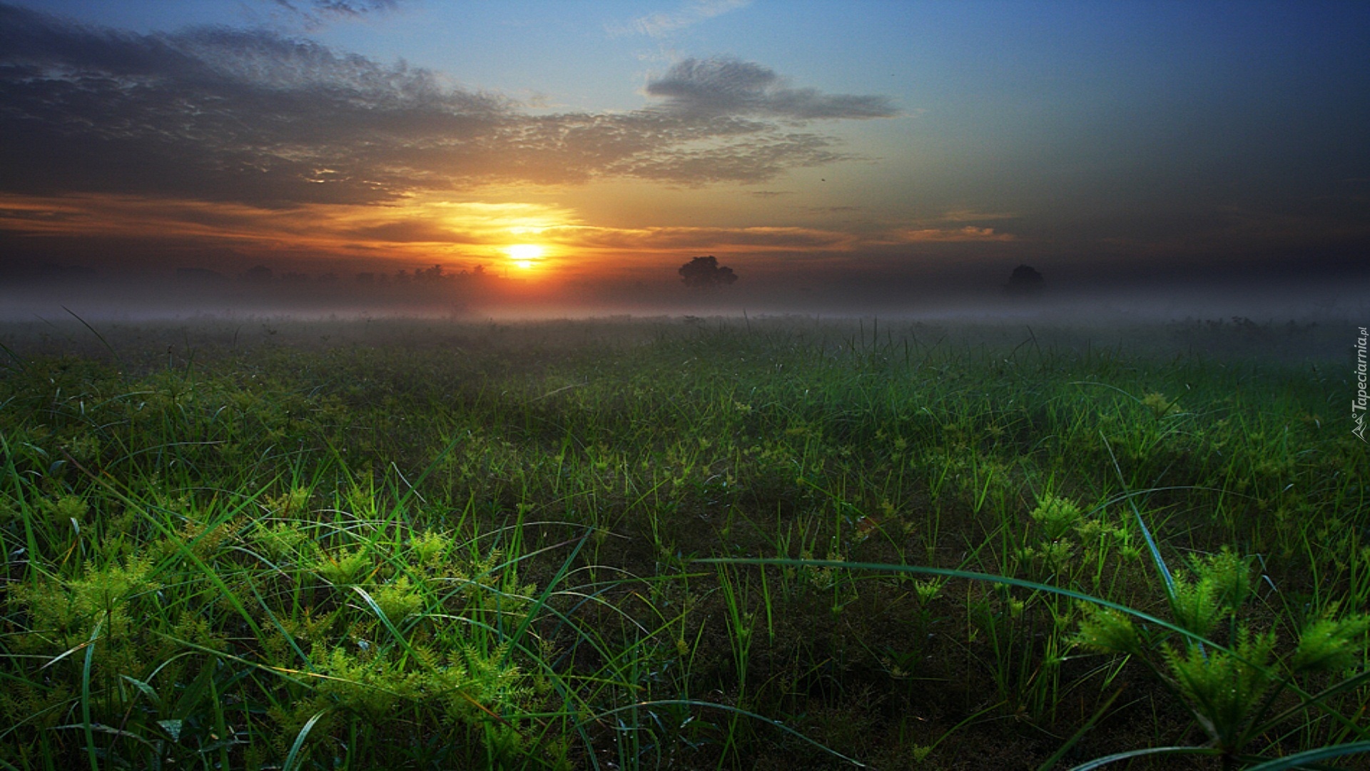 Edytor tapety: Łąka, Zachód, Słońca, Chmury