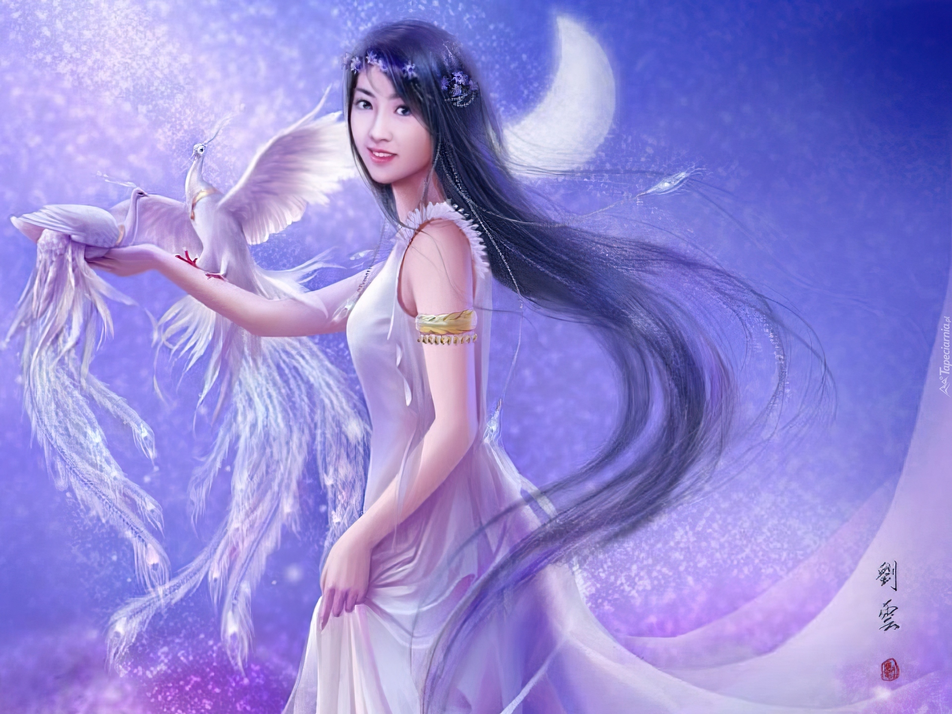 Edytor tapety: Dziewczyna, Białe, Ptaki