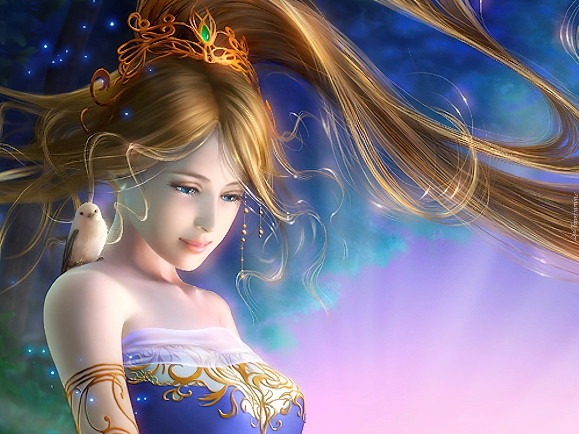 Edytor tapety: Dziewczyna, Włosy, Diadem, Ptaszek