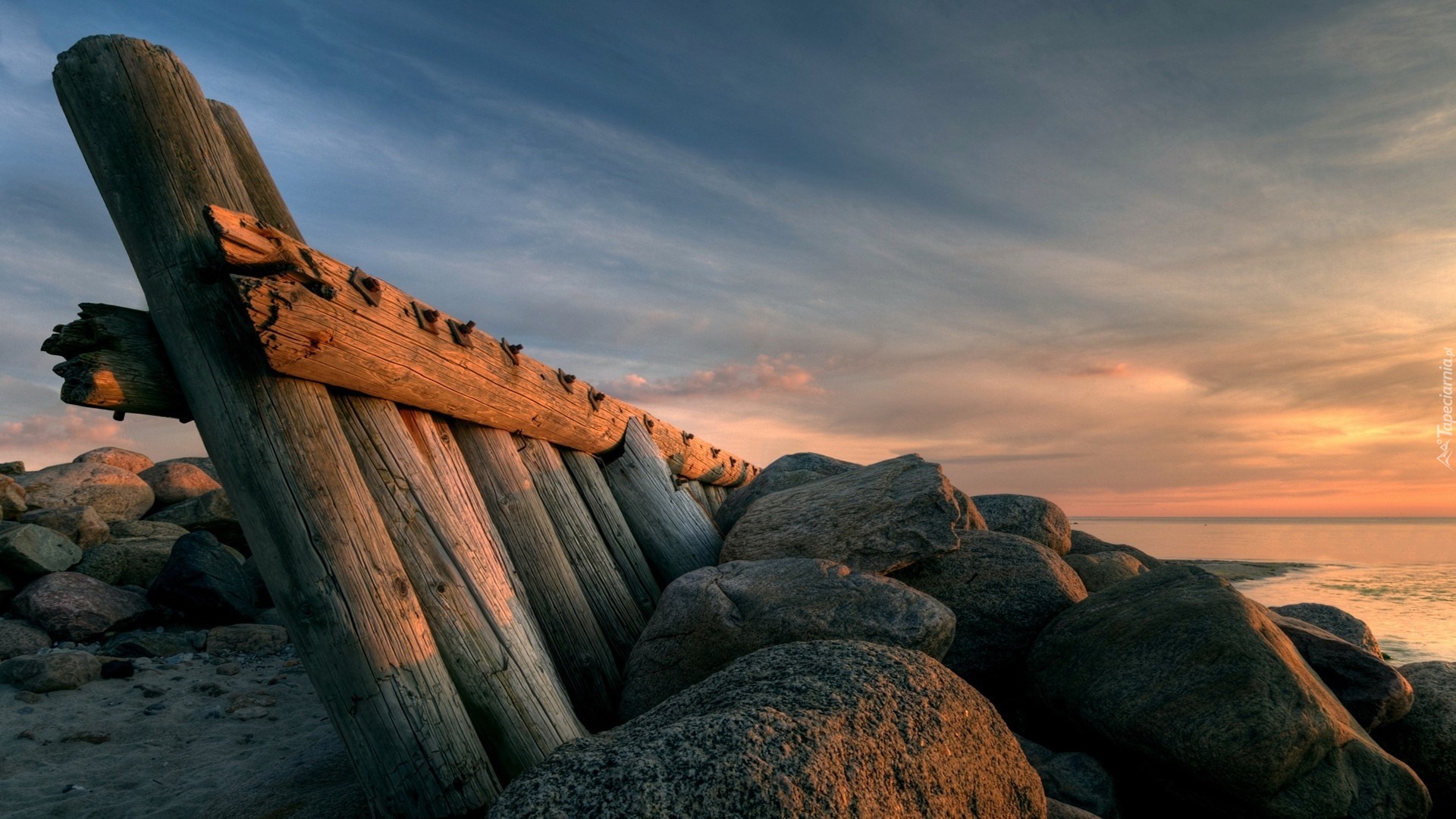 Edytor tapety: Morze, Falochron, Kamienie, Płot