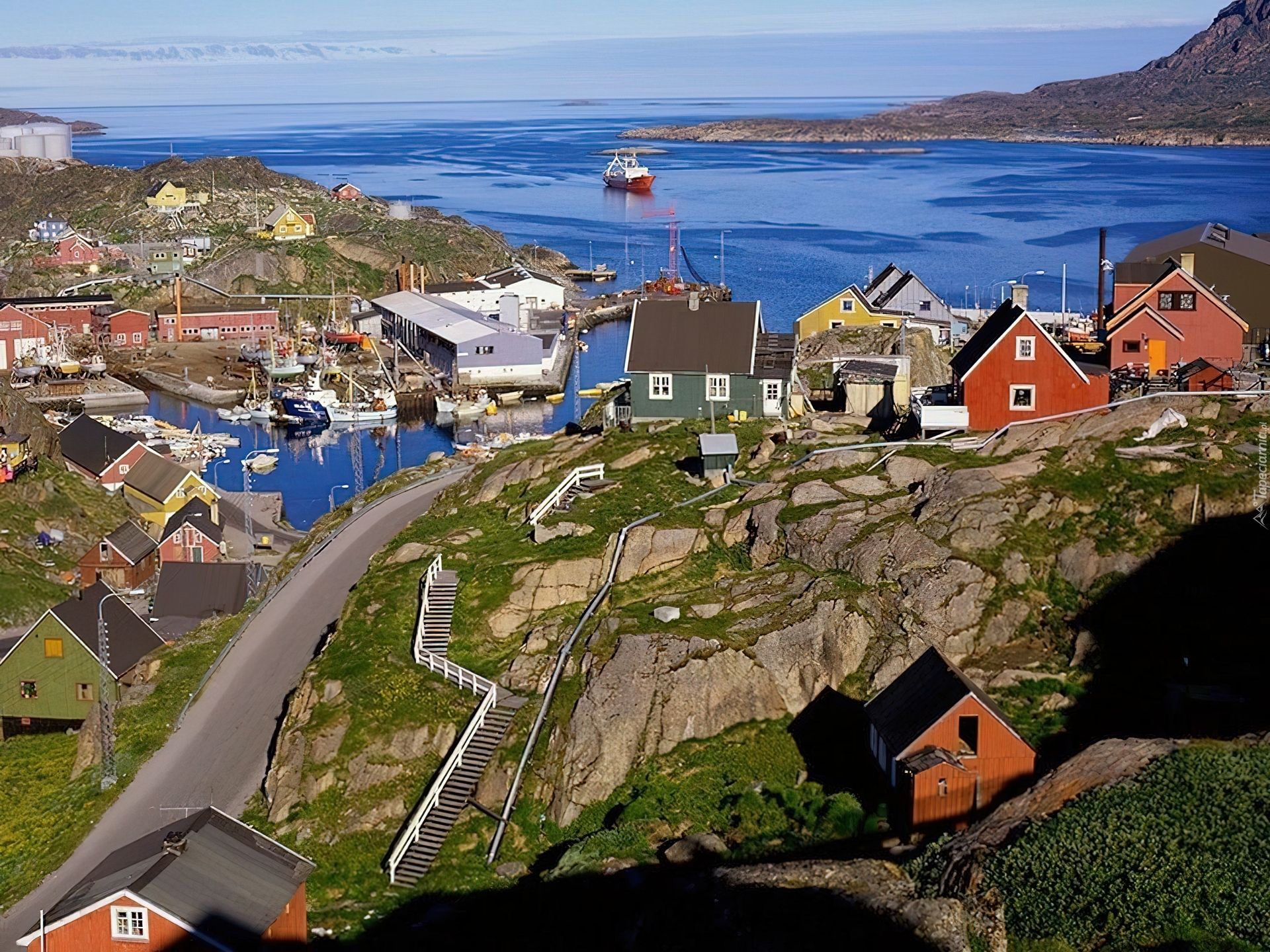 Edytor tapety: Morze, Zatoka, Góry, Droga, Domy
