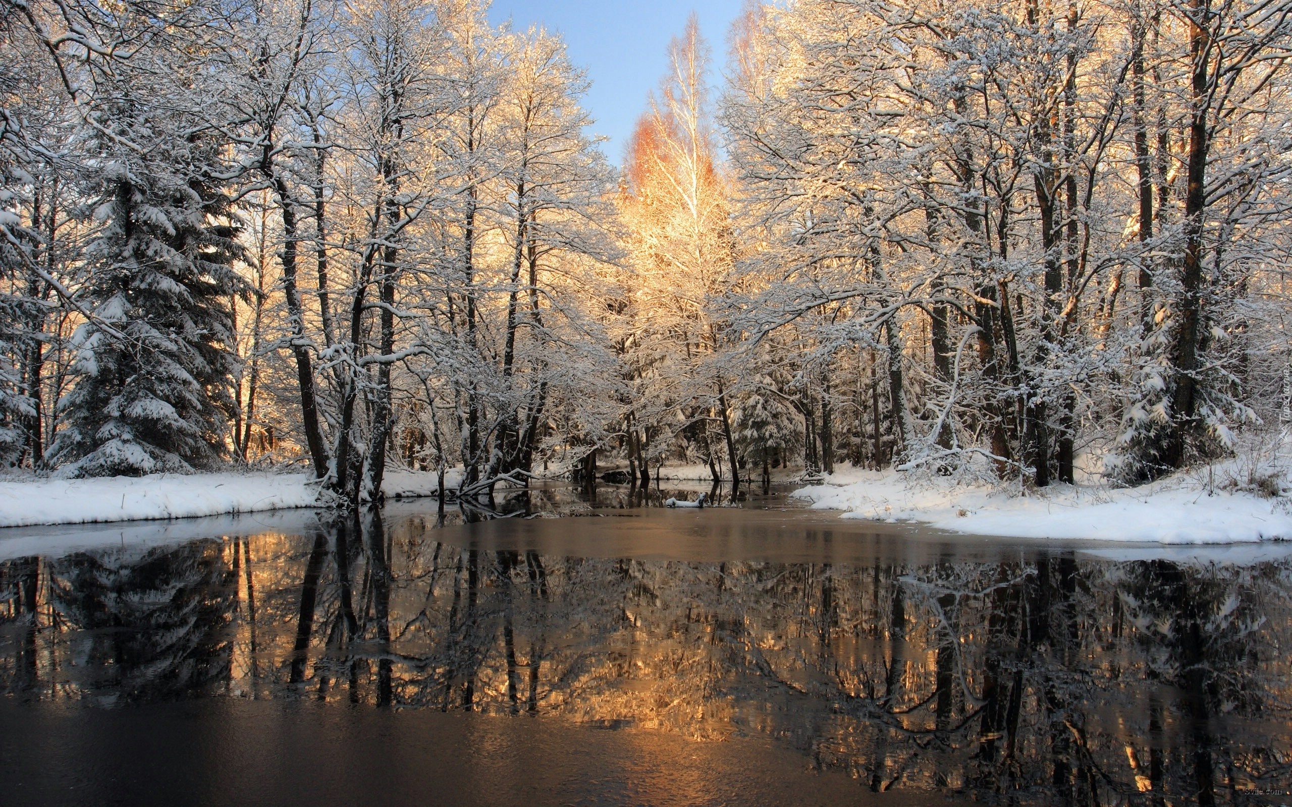 Edytor tapety: Rzeka, Śnieg, Drzewa