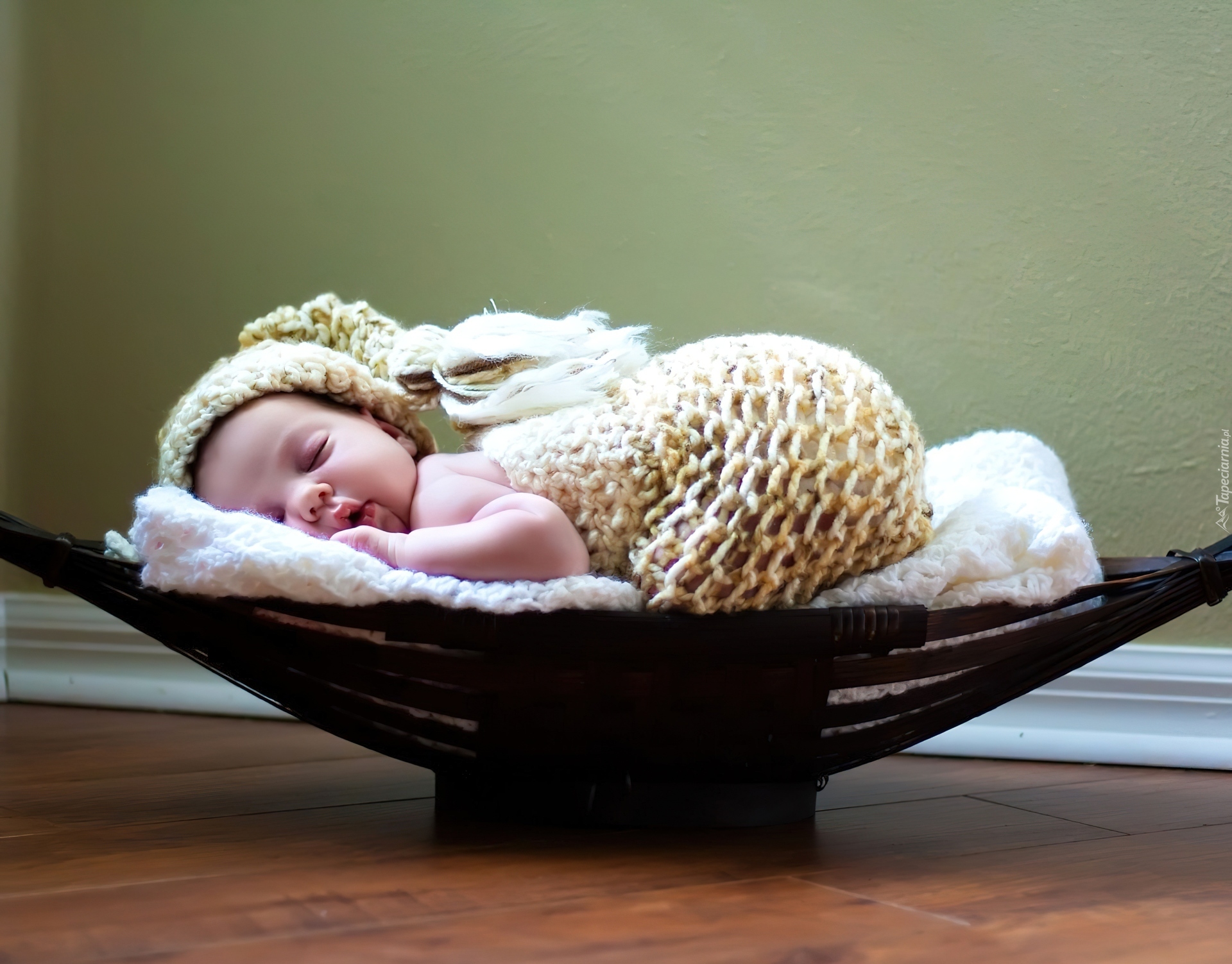 Edytor tapety: Śpiące, Niemowlę, Czapka, Włóczka, Kocyk