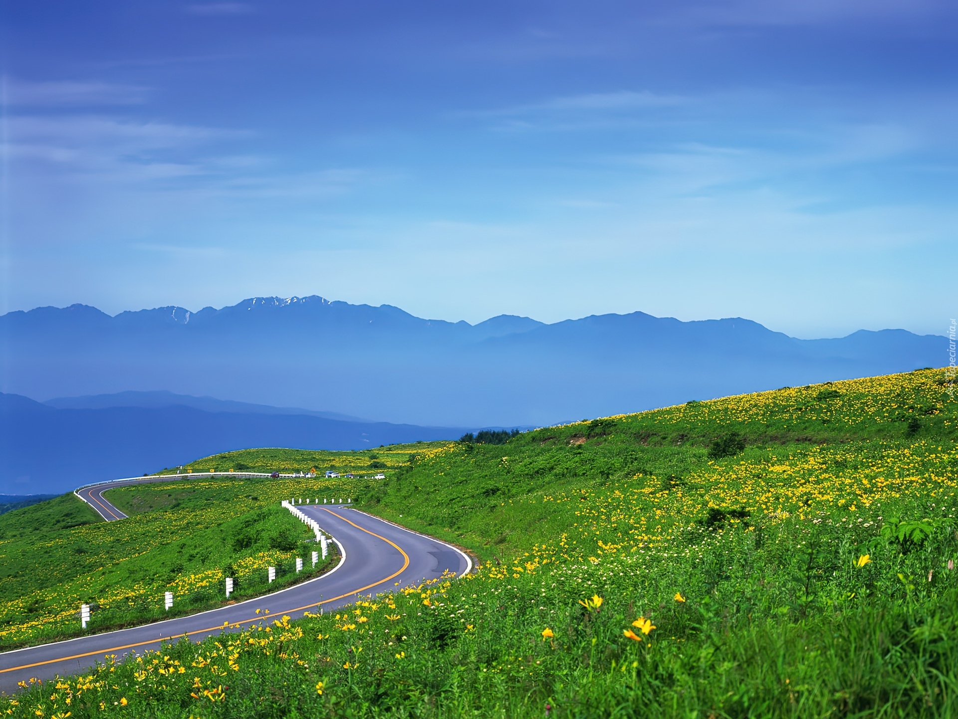 Edytor tapety: Droga, Łąki, Niebo