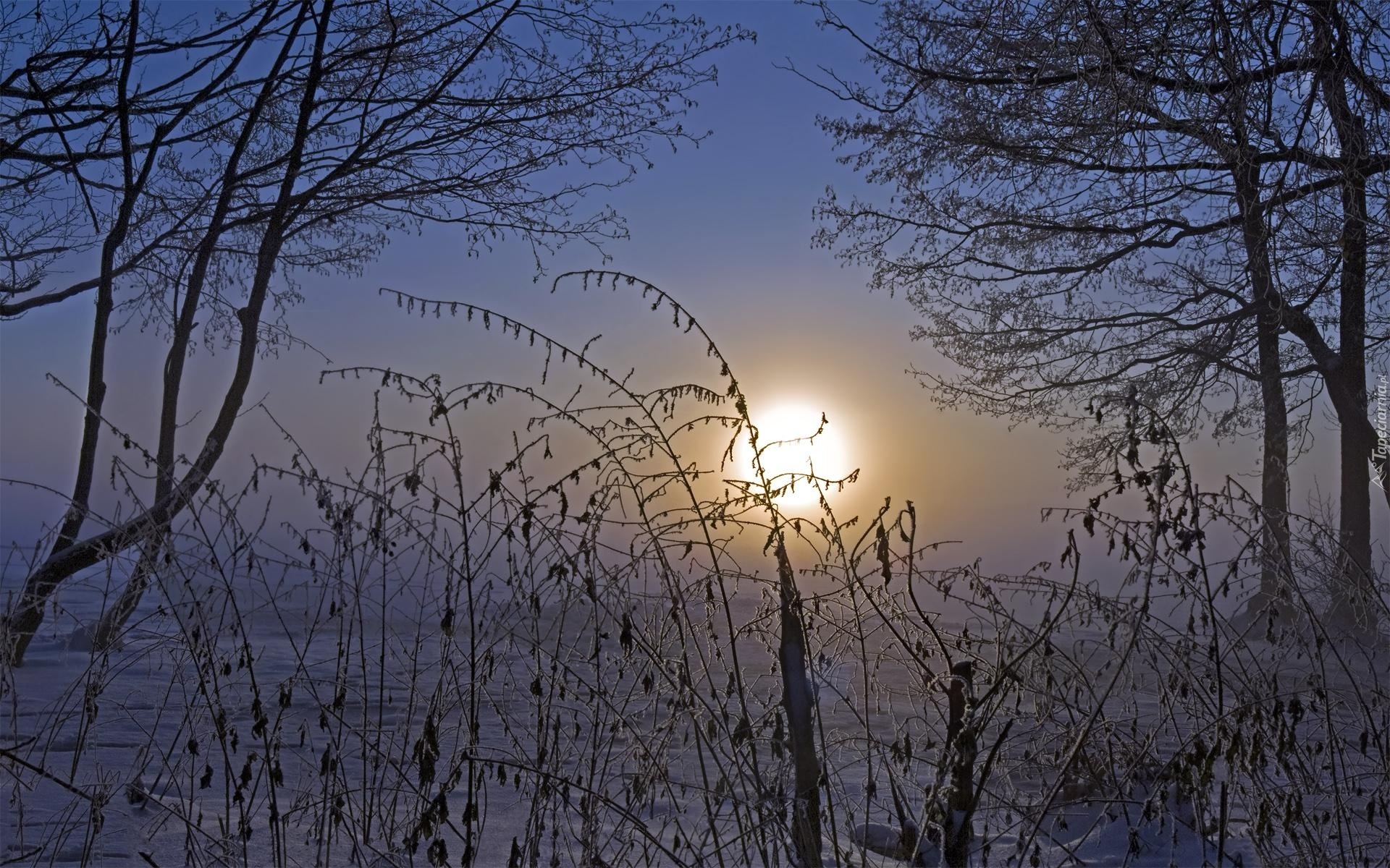 Edytor tapety: Zachód, Słońca, Zima, Drzewa