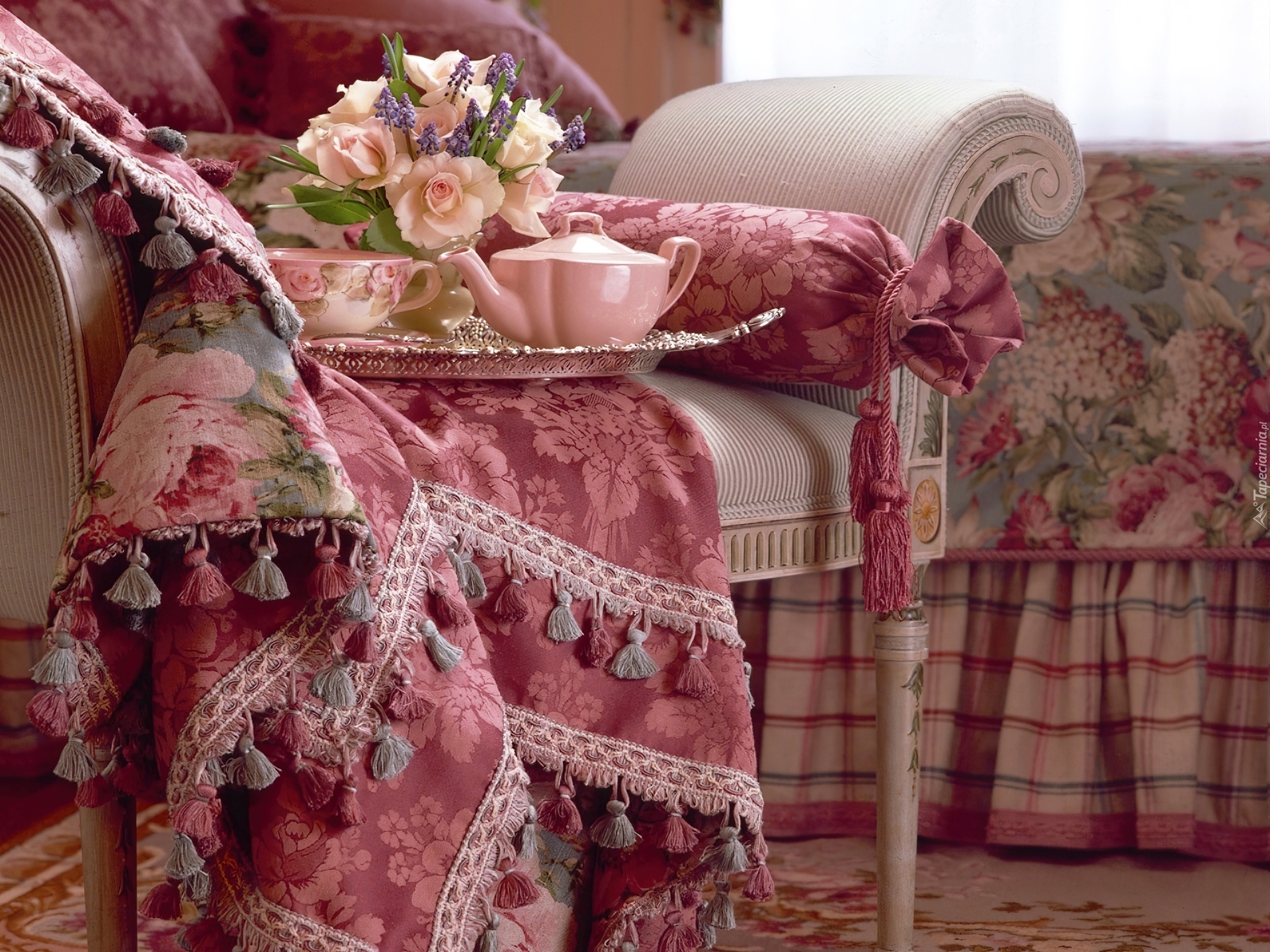Edytor tapety: Wnętrze, Pokoju, Bukiet, Kwiatów, Herbatka