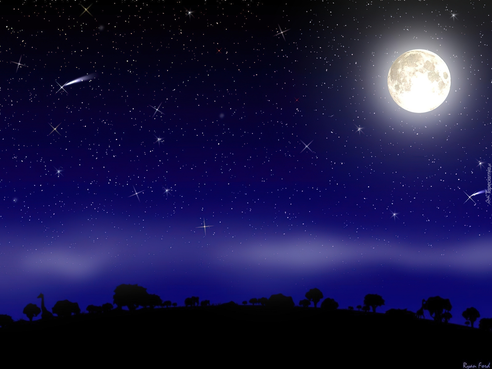 Edytor tapety: Niebo, Księżyc, Gwiazdy, Zwierzęta
