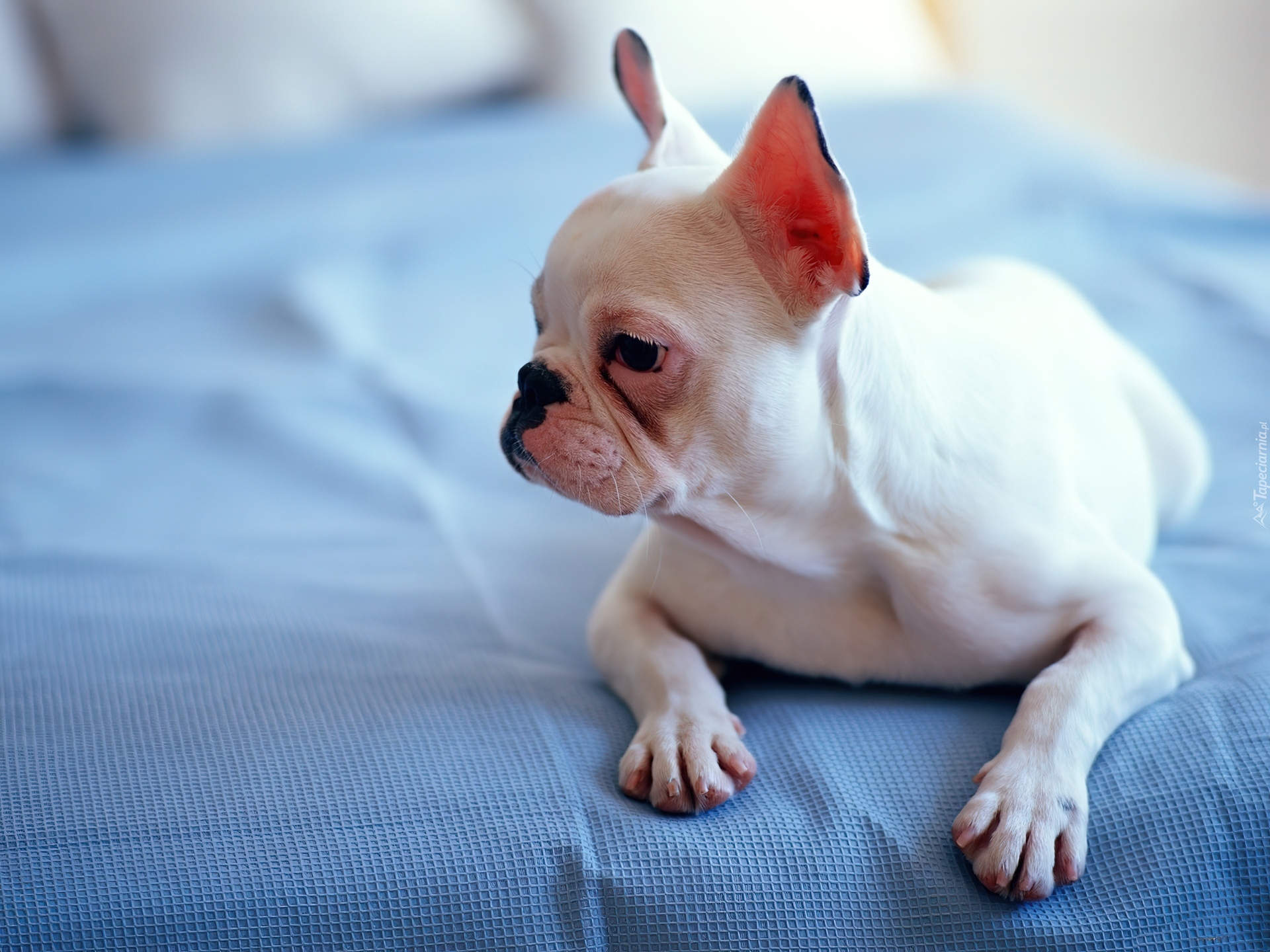 Edytor tapety: Biały, Buldog, Niebieskie, Nakrycie