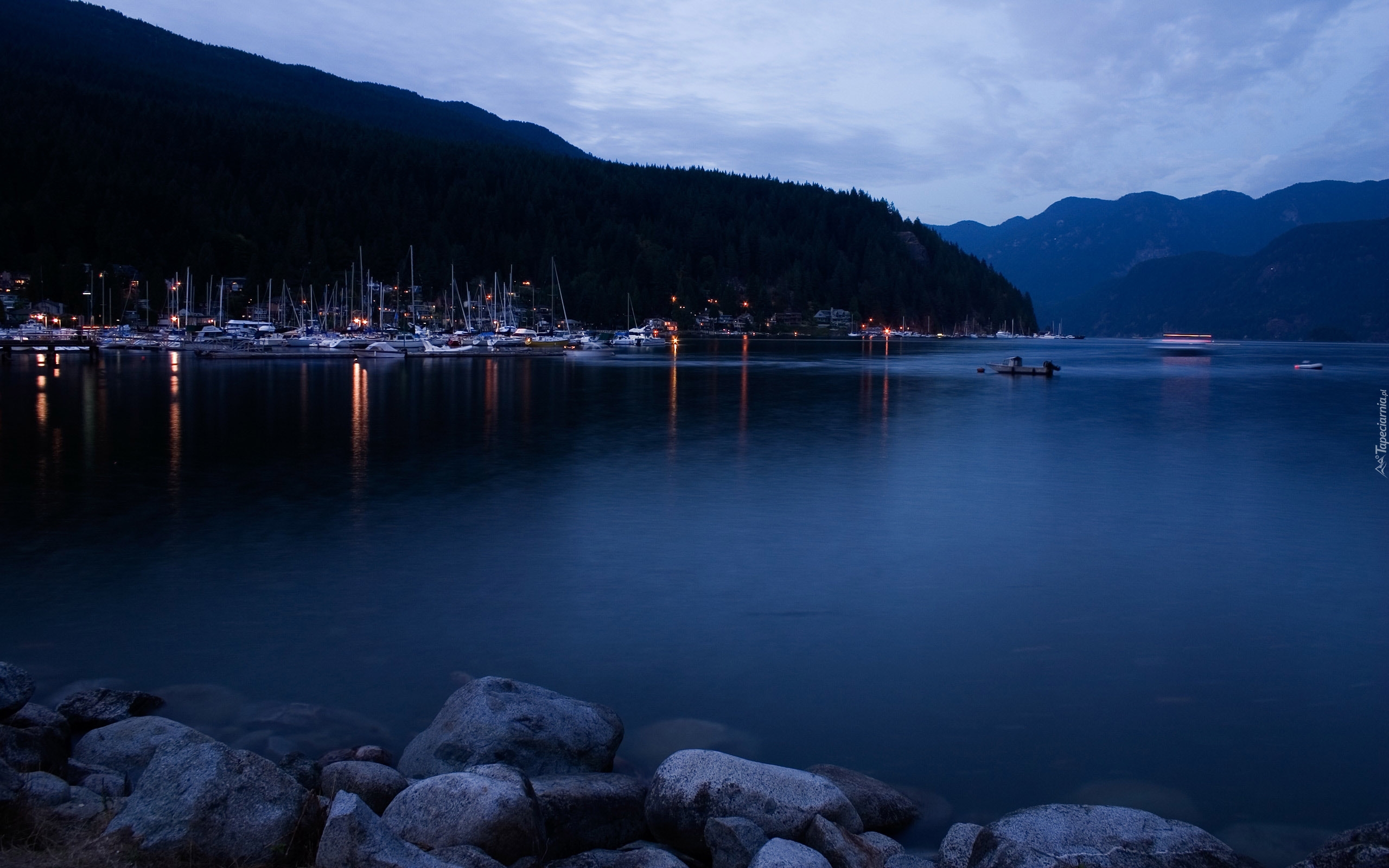 Edytor tapety: Jezioro, Wieczór, Marina, Jachty