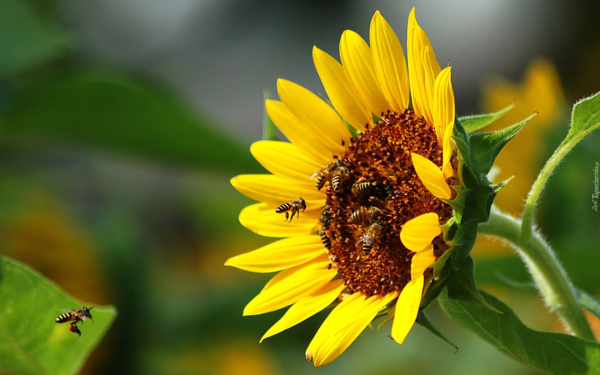 Edytor tapety: Słonecznik, Pszczoły, Nektar