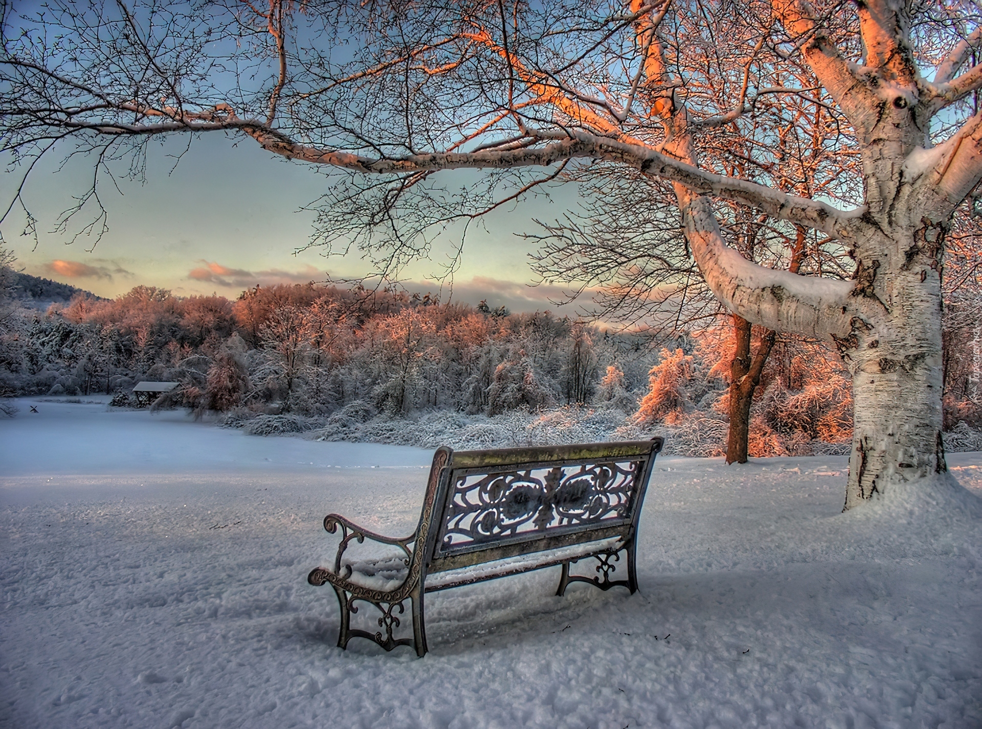 Edytor tapety: Lasy, Ławka, Śnieg, Zima