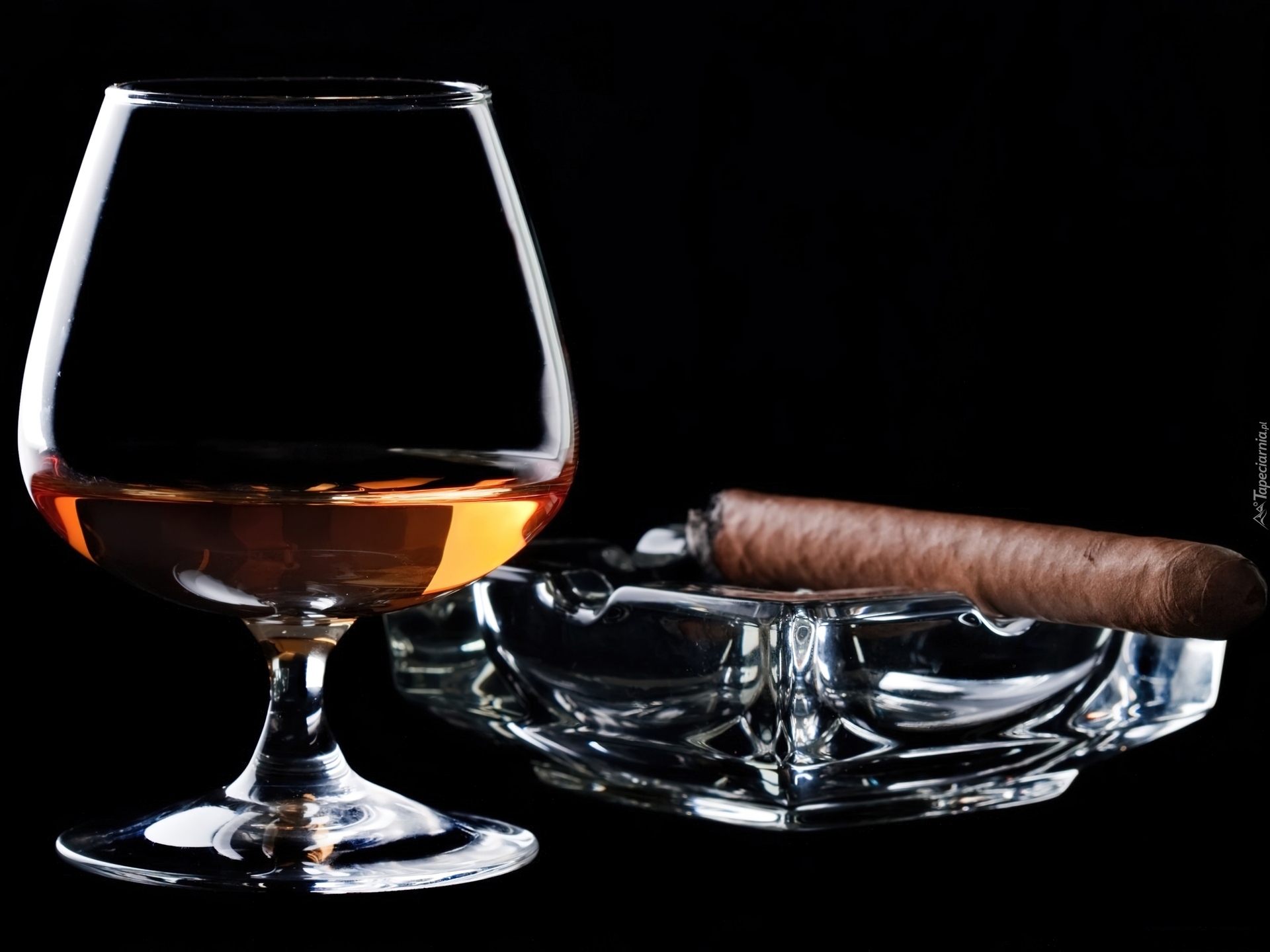Edytor tapety: Kieliszek, Koniaku, Cygaro, Popielniczka