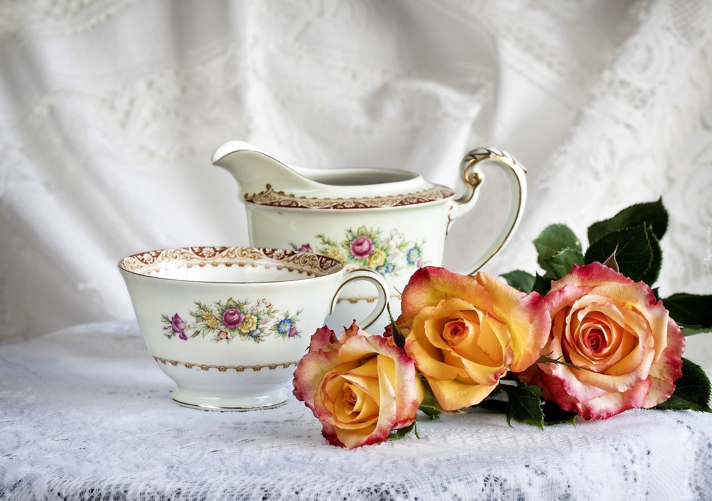 Edytor tapety: Róże, Porcelanowa, Filiżanka, Dzbanek