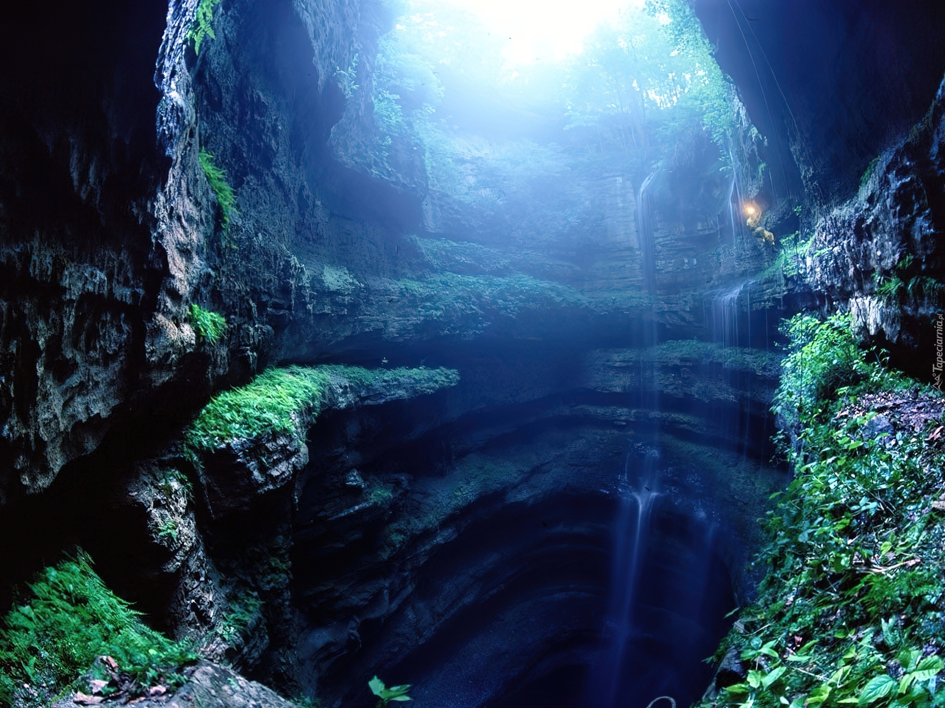 Edytor tapety: Jaskinia, Wodospad, Zarośla