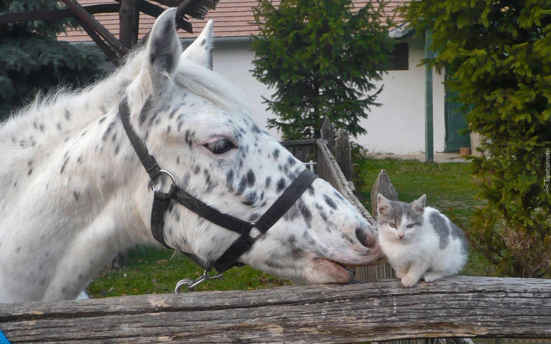 Edytor tapety: Koń, Zagroda, Płot, Kotek