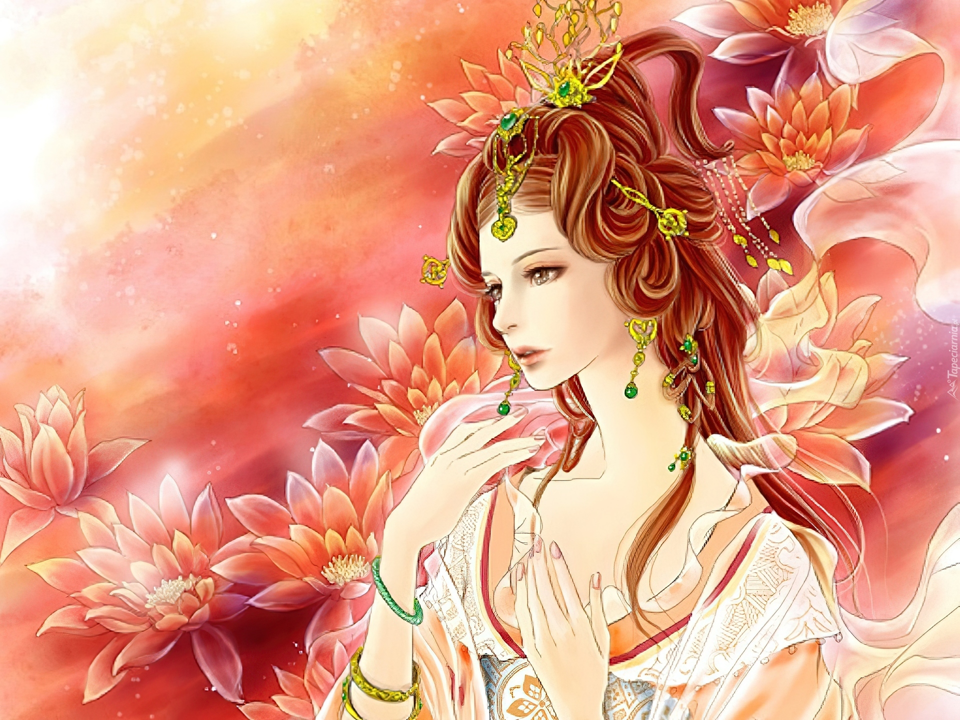 Edytor tapety: Dziewczyna, Kolczyki, Kwiaty, Lotosu