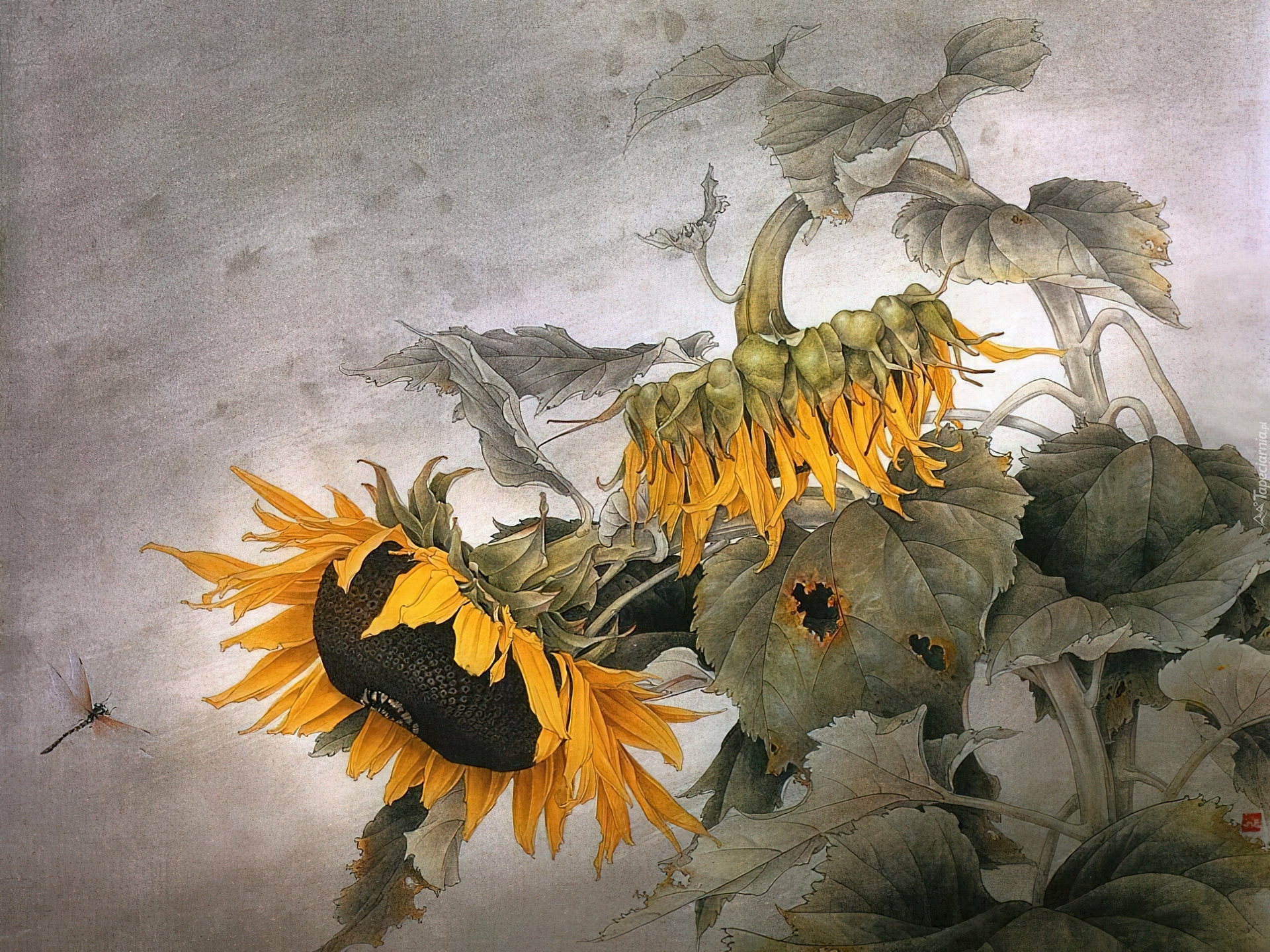 Edytor tapety: Reprodukcja, Słoneczniki, Ważka