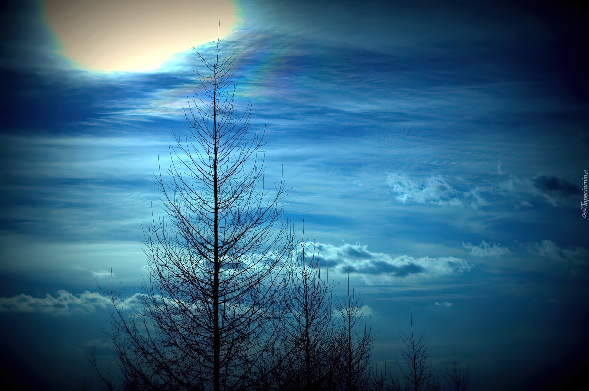Edytor tapety: Wieczorne, Niebo, Drzewa