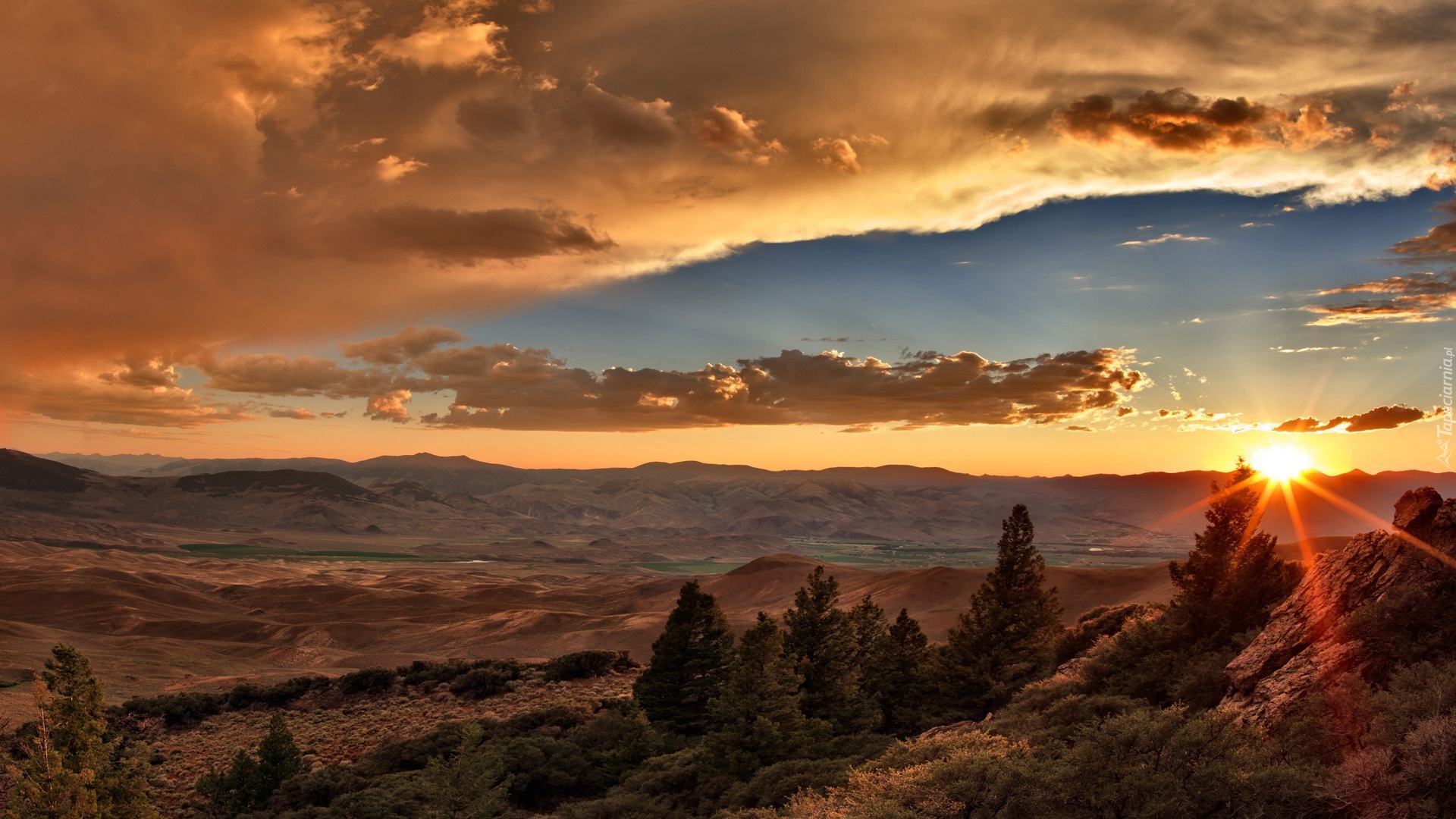 Edytor tapety: Góry, Promienie, Słoneczne, Chmury