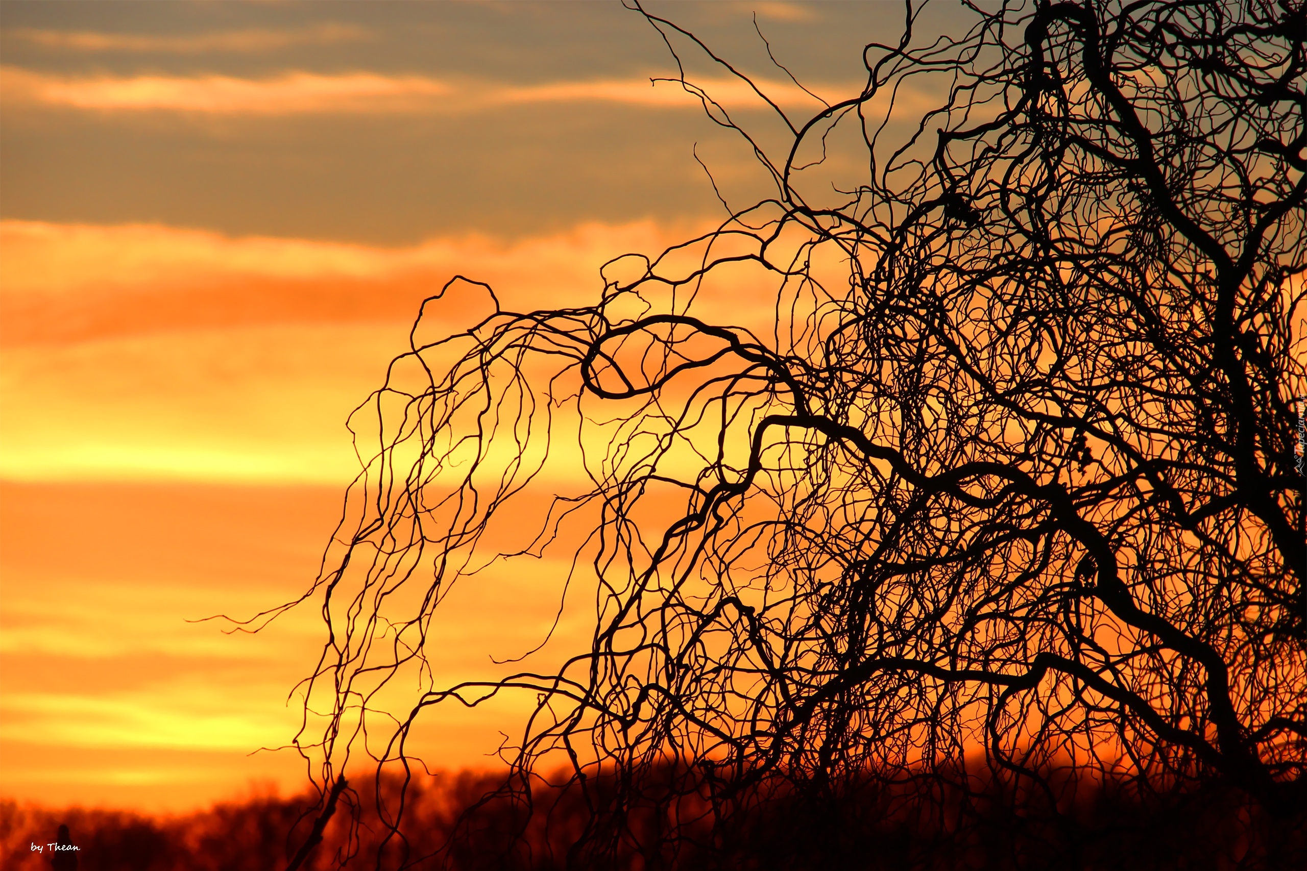 Edytor tapety: Zachód, Słońca, Gałązki, Wierzby