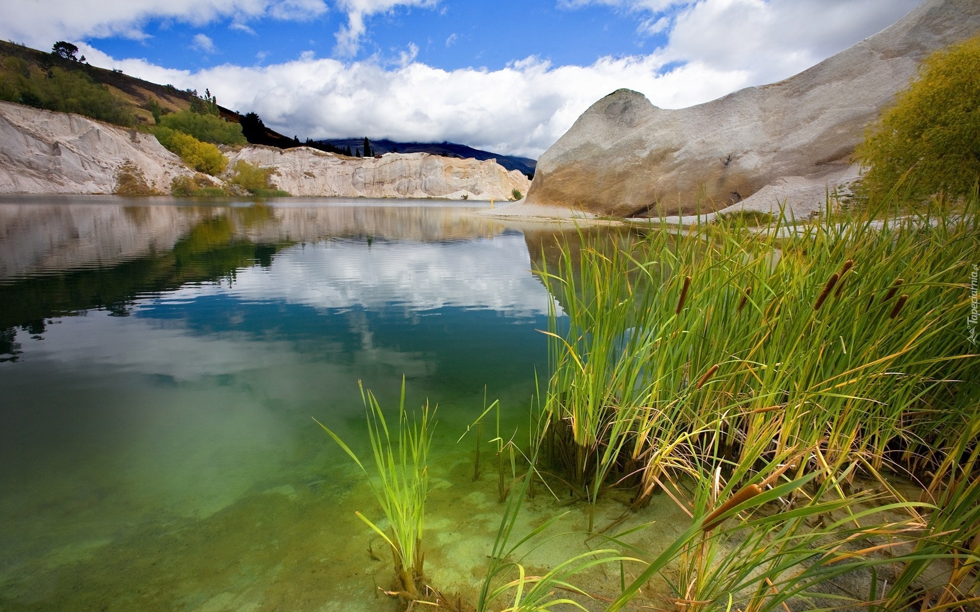 Edytor tapety: Rzeka, Skały, Szuwary, Pałki, Wodne