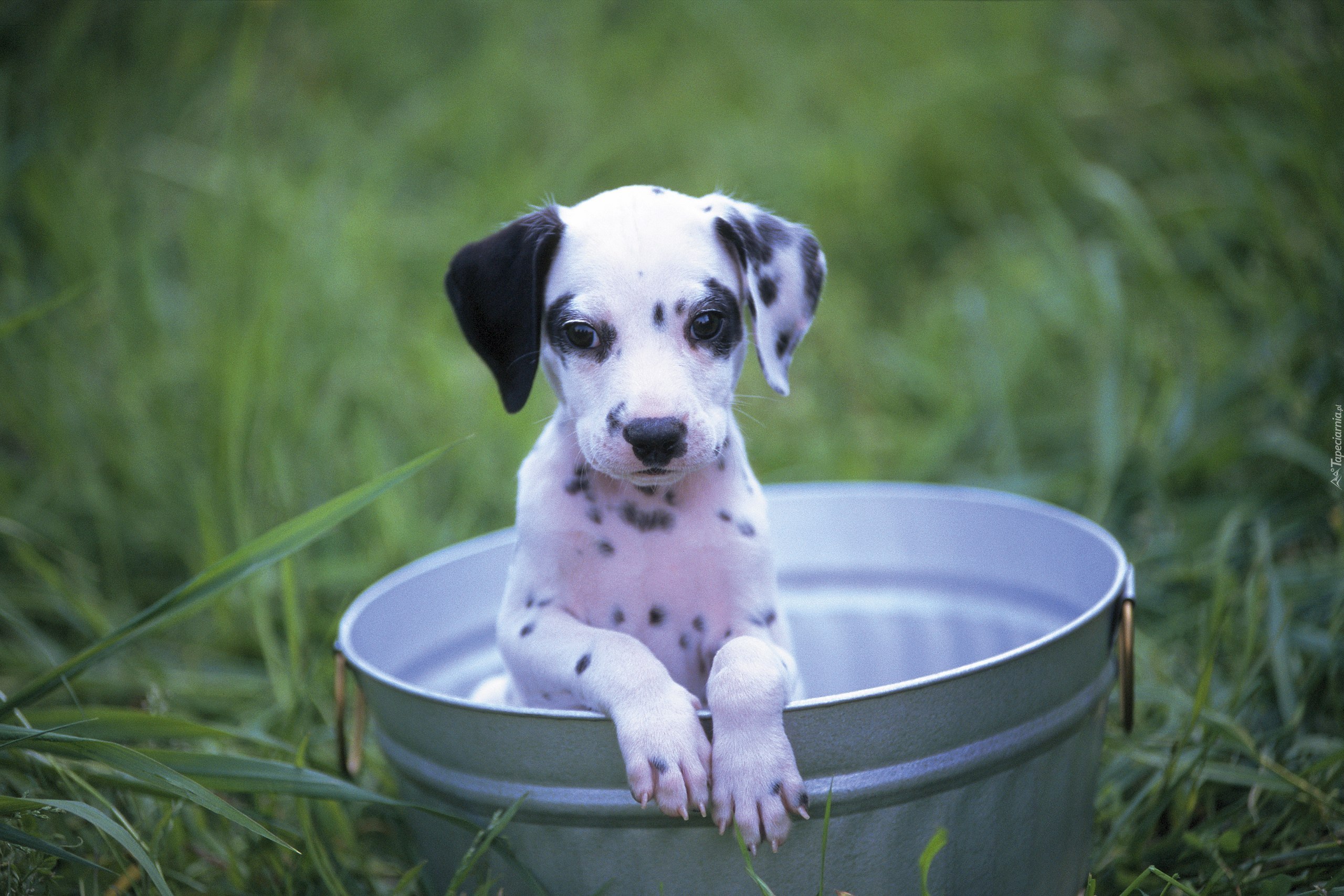 Edytor tapety: Młody, Dalmatyńczyk, Wiaderko