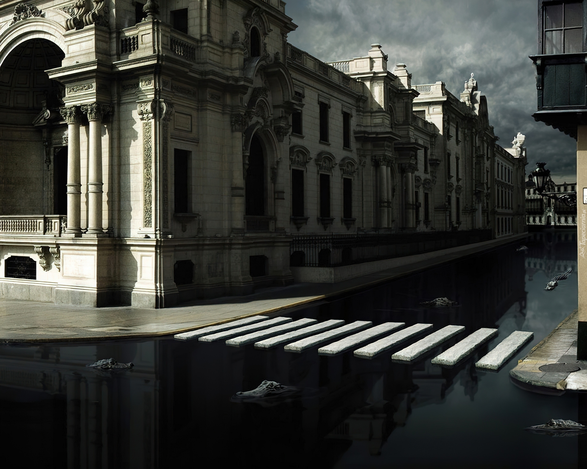 Edytor tapety: Zalane, Miasto, Budynek, Krokodyle