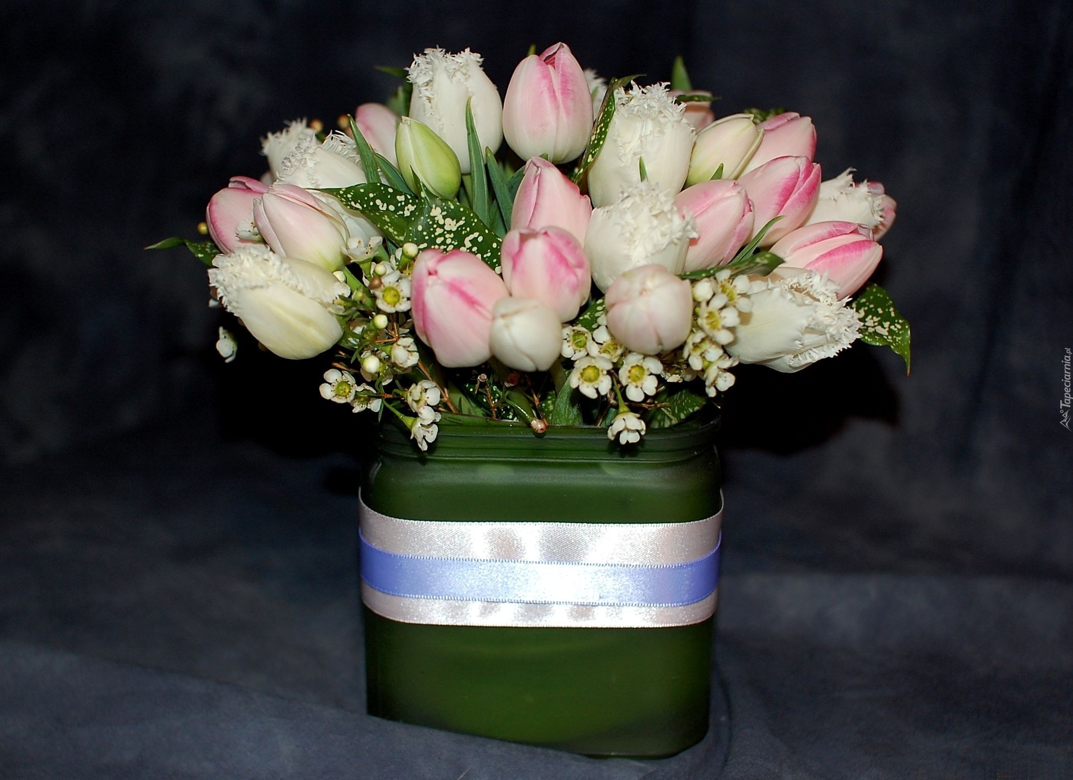Edytor tapety: Bukiet, Tulipanów, Wazon