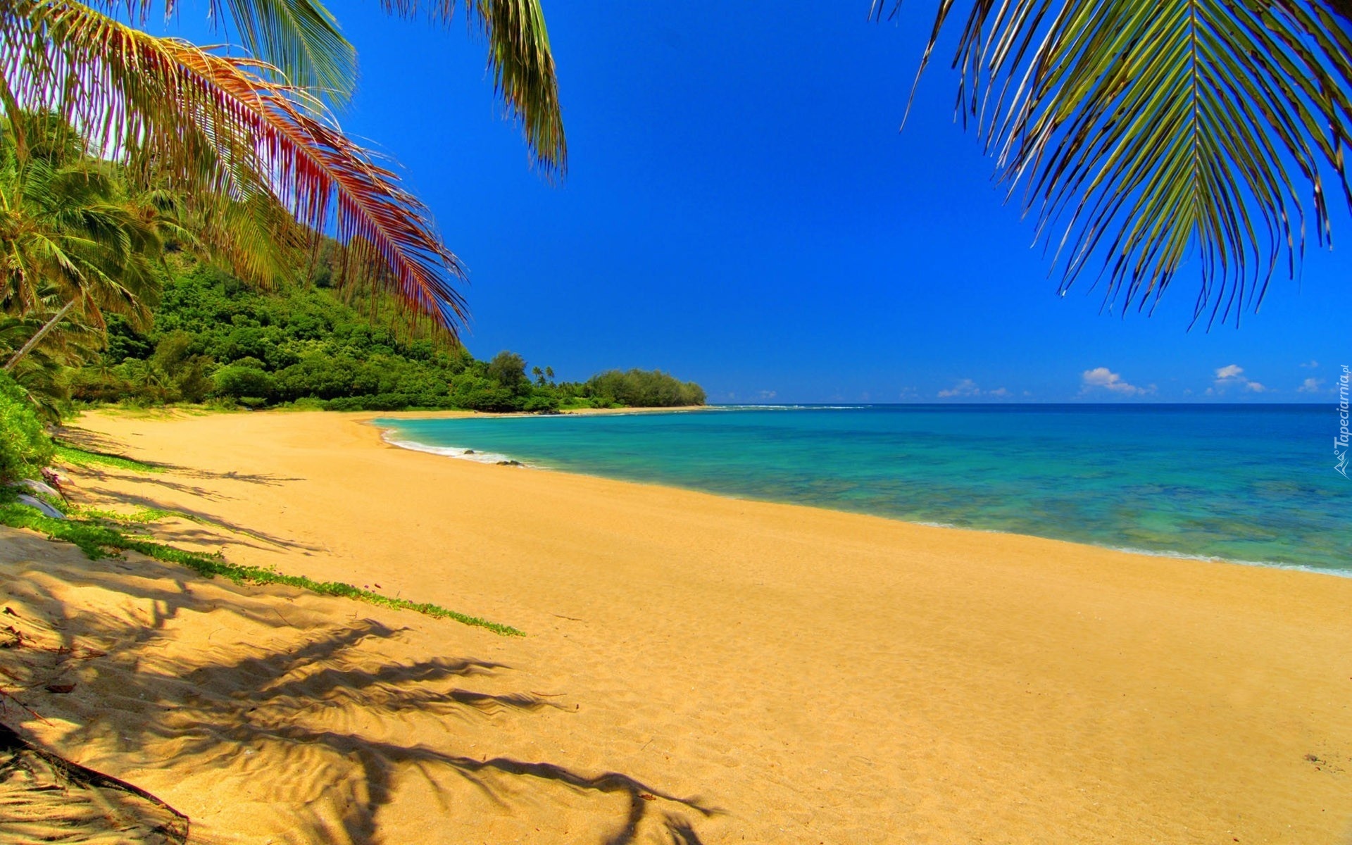 Edytor tapety: Plaża, Piasek, Liście, Palmy