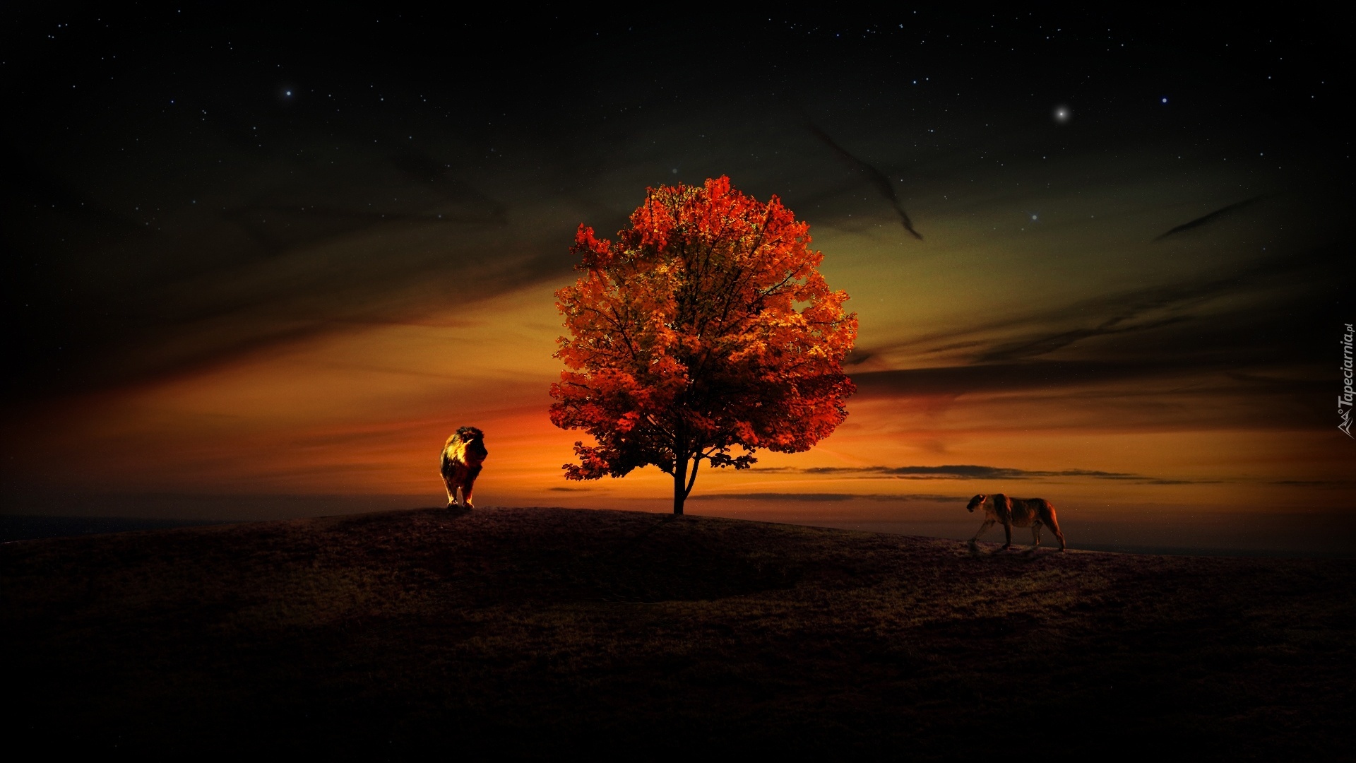 Edytor tapety: Drzewo, Lew, Lwica