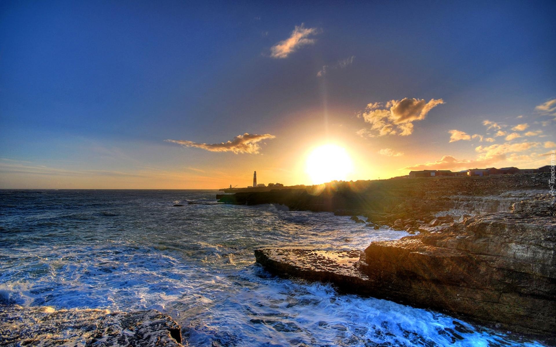 Edytor tapety: Zachód, Słońca, Morze, Latarnia, Morska