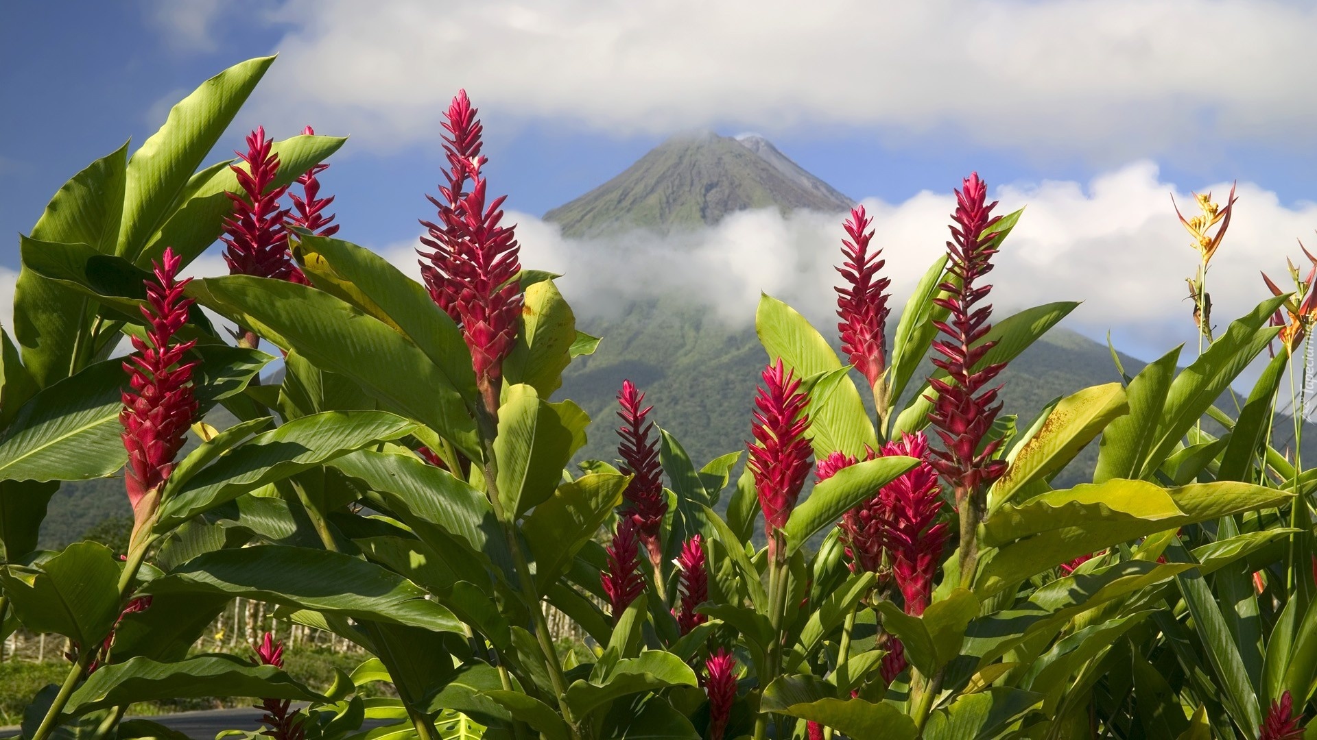 Edytor tapety: Góra, Chmury, Kwiaty