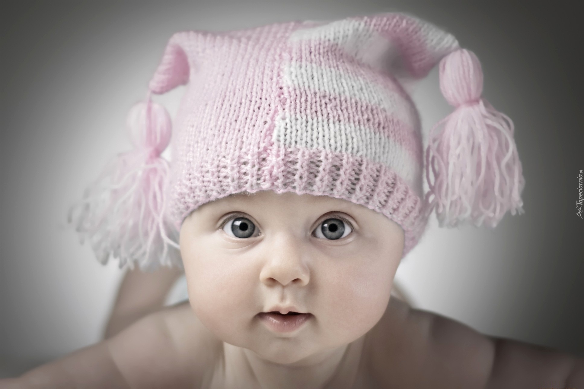 Edytor tapety: Mały, Bobasek, Różowa, Czapeczka, Pompony