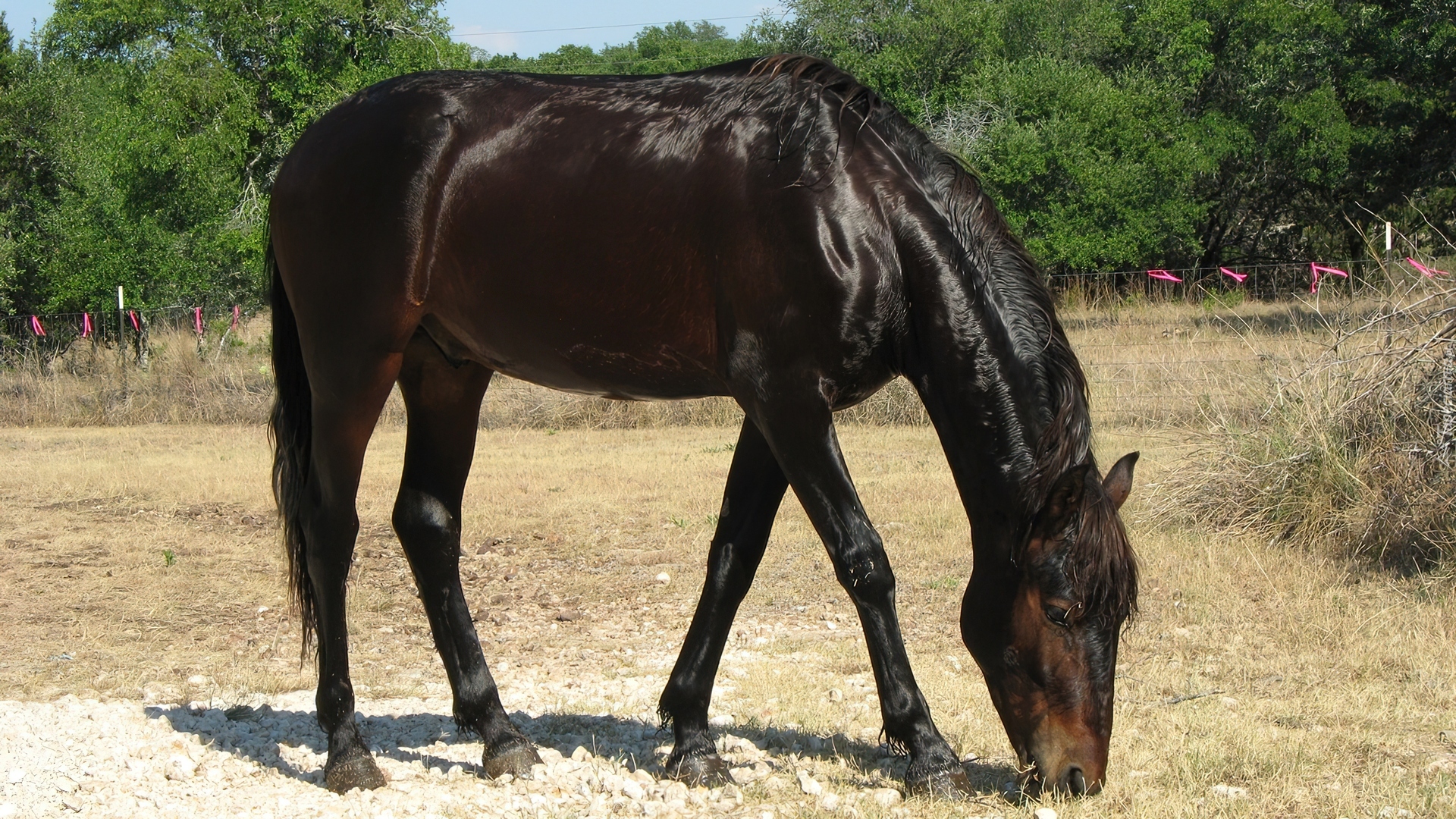 Edytor tapety: Koń, Drzewa, Trawa
