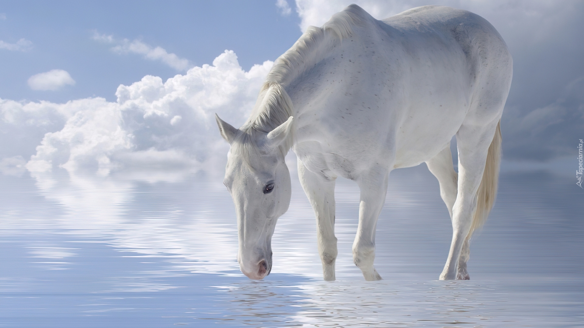 Edytor tapety: Koń, Woda, Niebo, Chmury