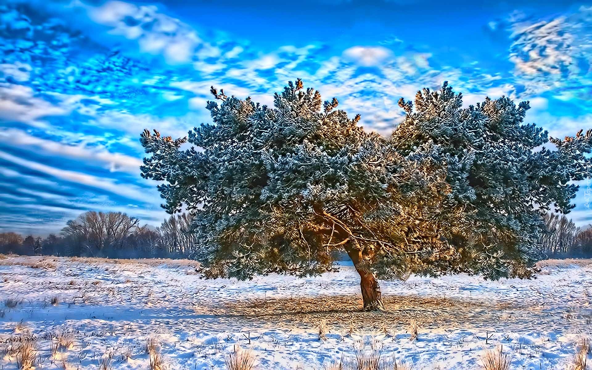 Edytor tapety: Oszronione, Drzewo, Chmury, Śnieg, Zima