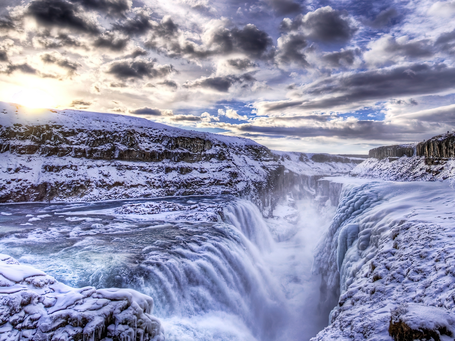Edytor tapety: Ośnieżone, Skały, Wodospad