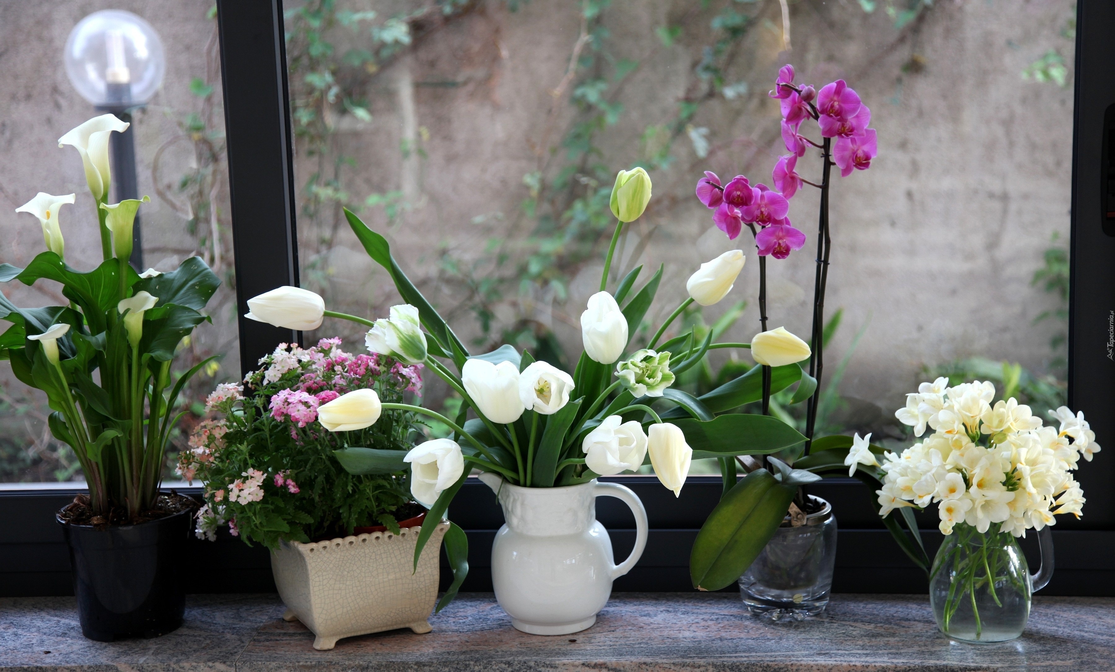 Edytor tapety: Bukiety, Wiosennych, Kwiatów, Okno