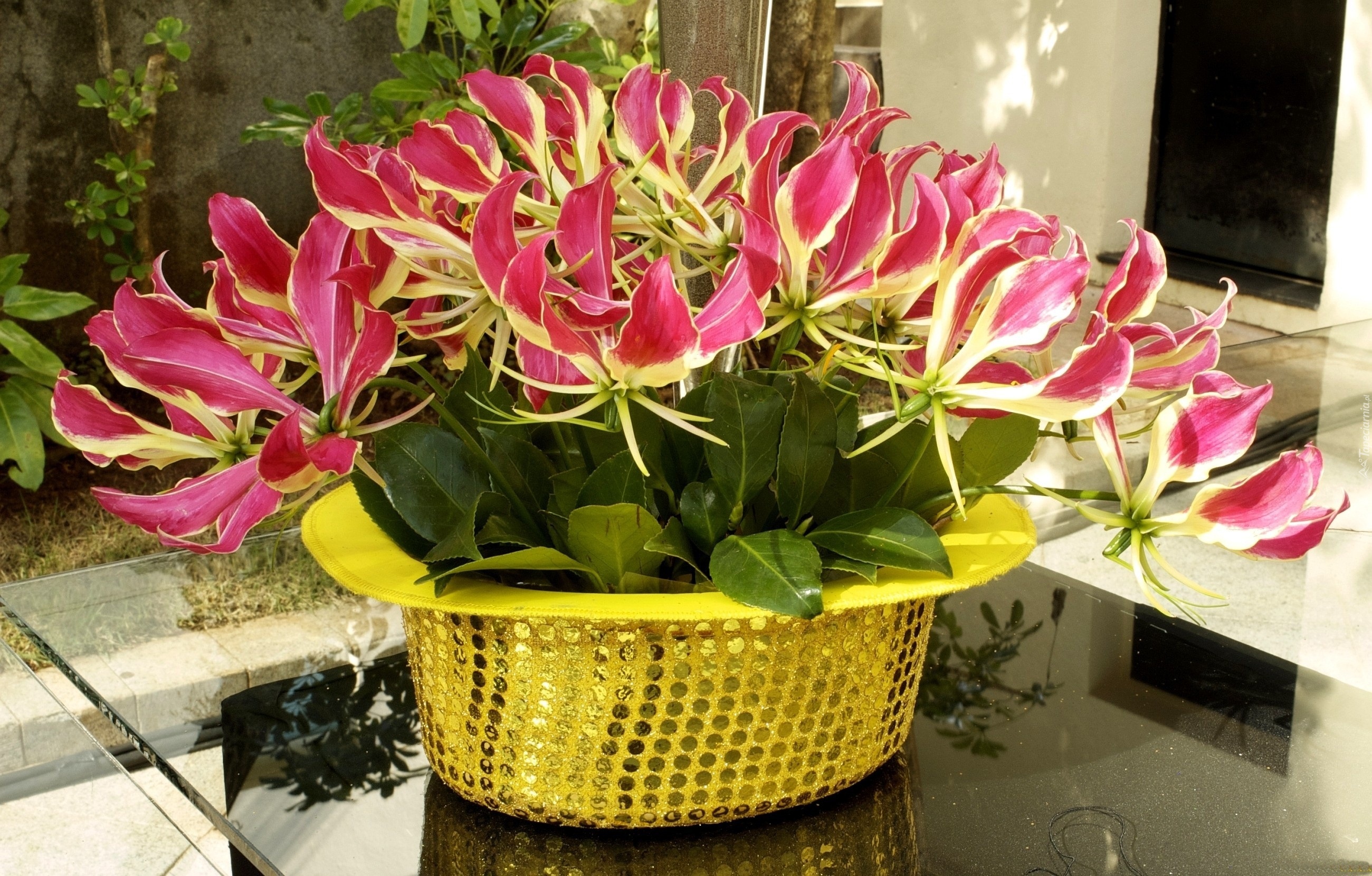Edytor tapety: Różowe, Storczyki, Złoty, Cylinder