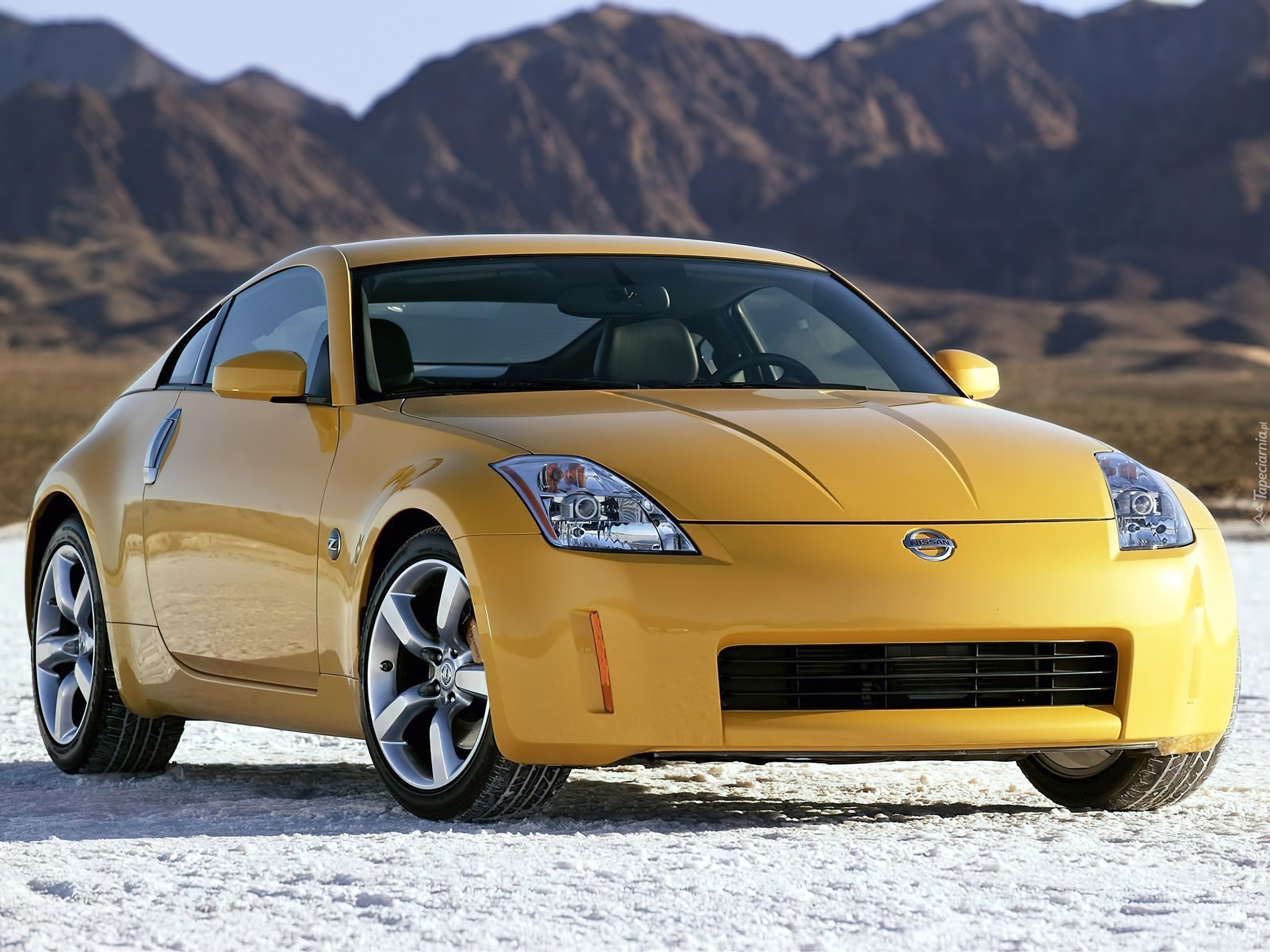 Edytor tapety: Nissan 350Z Coupe, Żółty, Góry