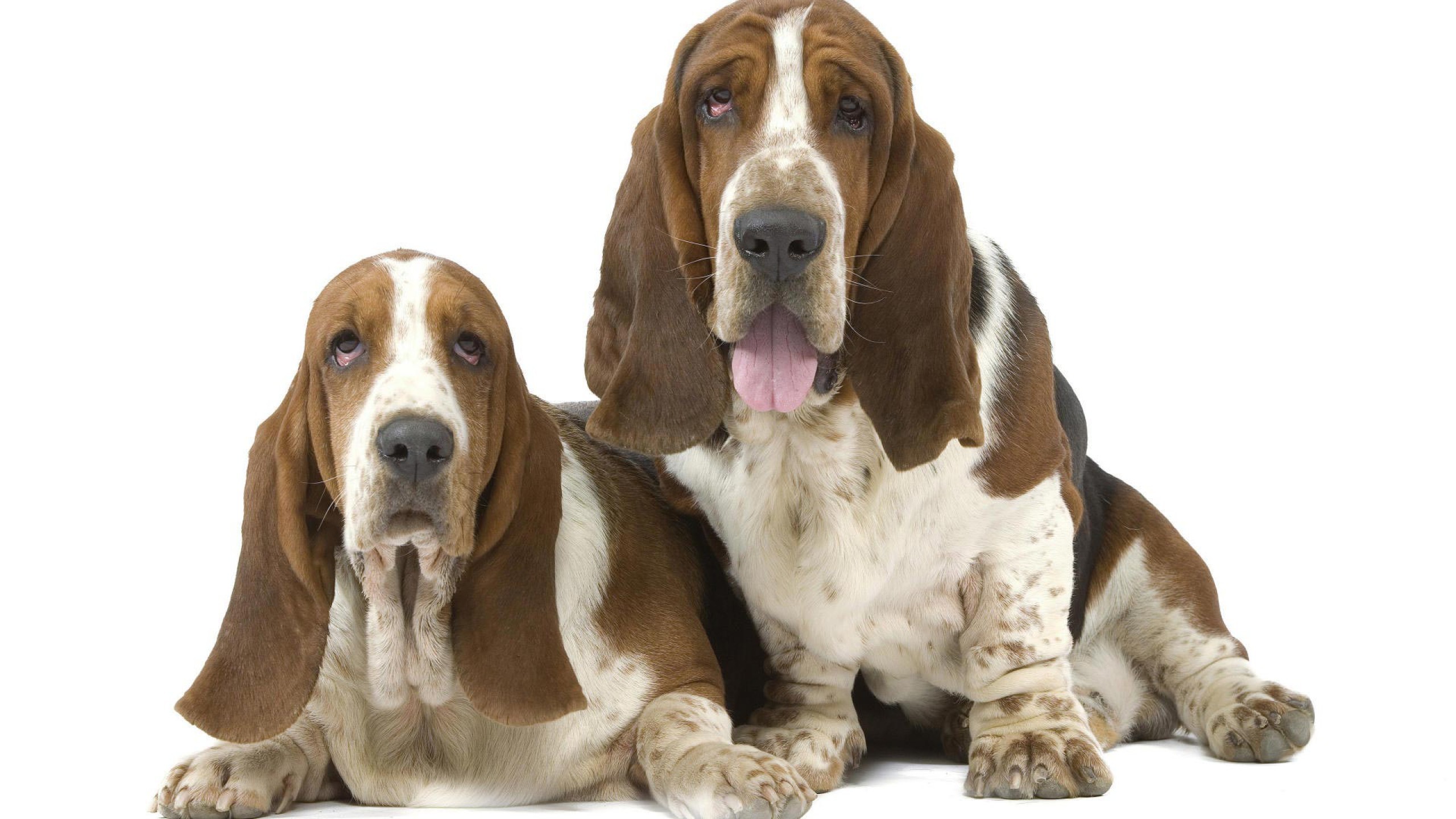 Edytor tapety: Dwa, Pieski, Basset Hound, Długie, Uszy