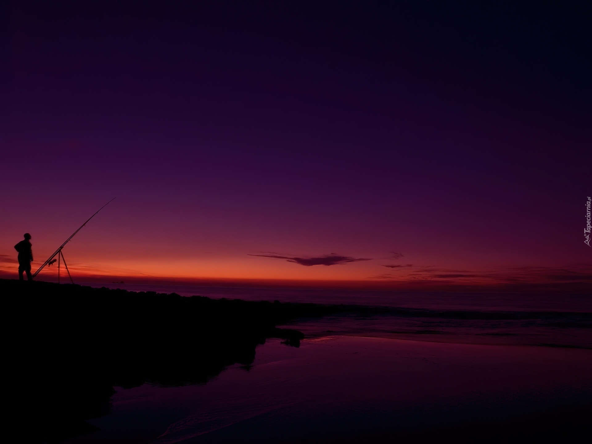 Edytor tapety: Jezioro, Noc, Wędkarz