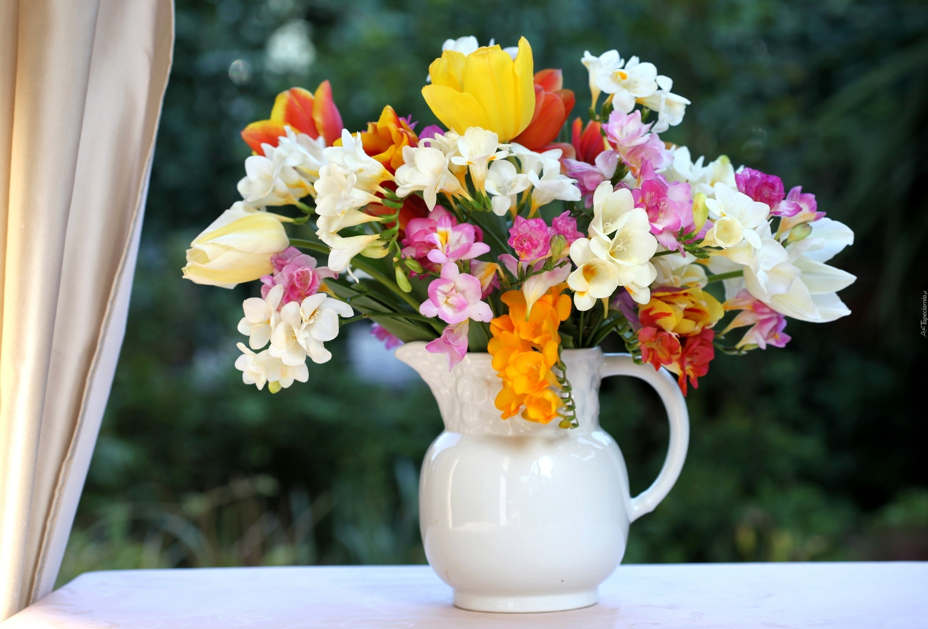 Edytor tapety: Biały, Wazon, Bukiet, Kwiatów