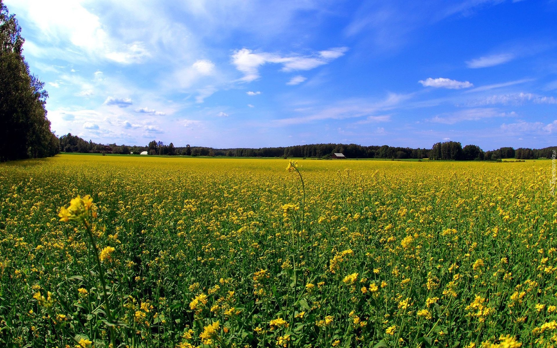 Edytor tapety: Pole, Kwiaty, Drzewa, Domy