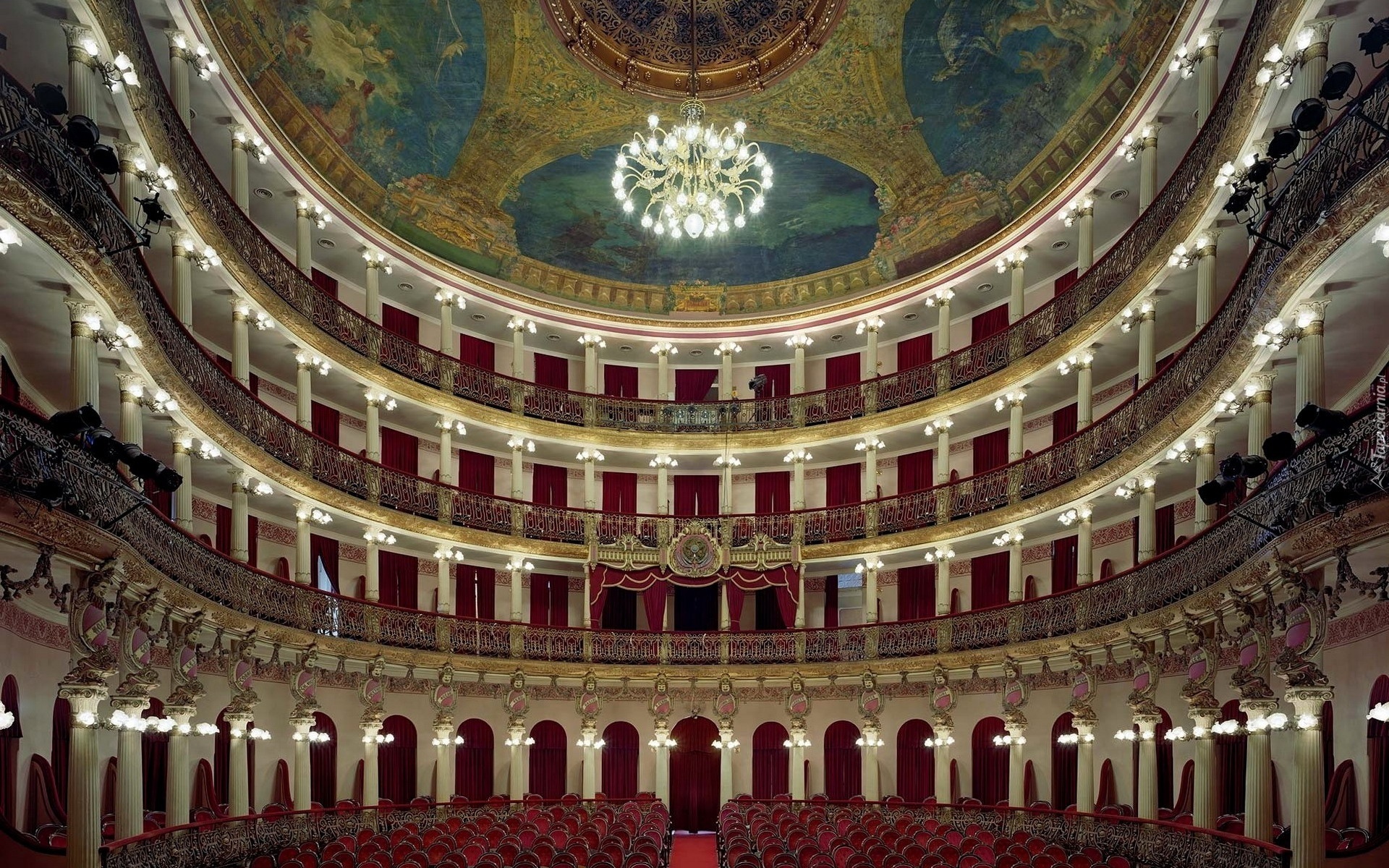 Edytor tapety: Brazylia, Manaus, Teatr, Amazon Theatre, Siedzenia, Loże, Żyrandol, Oświetlenie